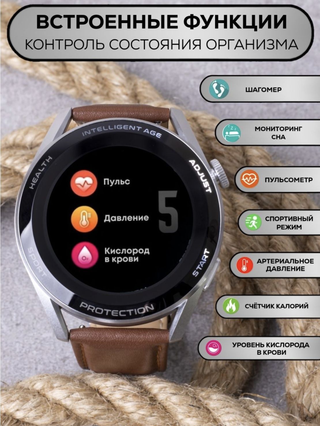 Умные часы помогают контролировать такие функции как: длительность сна и его качество, давление, количество пройденных шагов и расстояние, пульс, количество сожженных калорий.