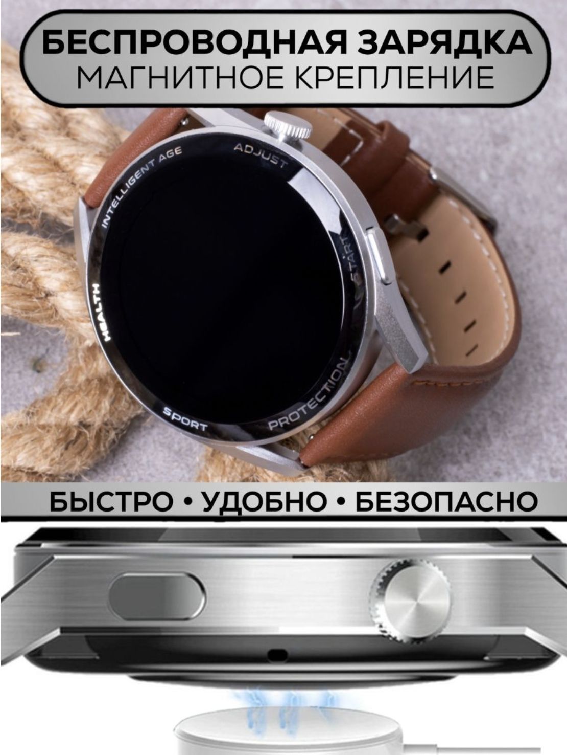 Умные часы Smart Watch, Ремешок на руку (2шт) Беспроводное зарядное устройство, Инструкция