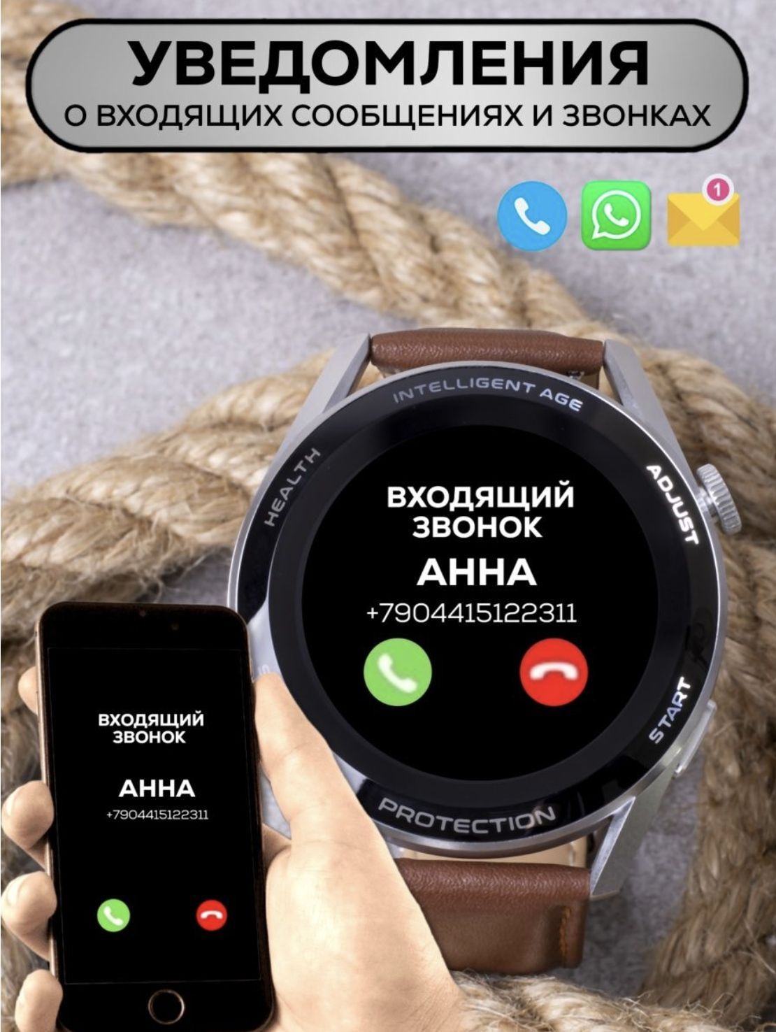 Smart часы уведомляют о входящих сообщениях и звонках.