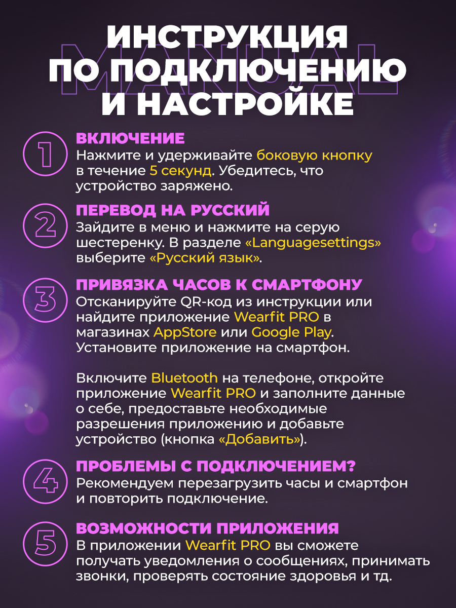 Смарт-часы - 1 шт; Беспроводная зарядка - 1 шт; Ремешок силиконовый - 1 шт; Ремешок металическй -1 шт; Инструкция - 1 шт.