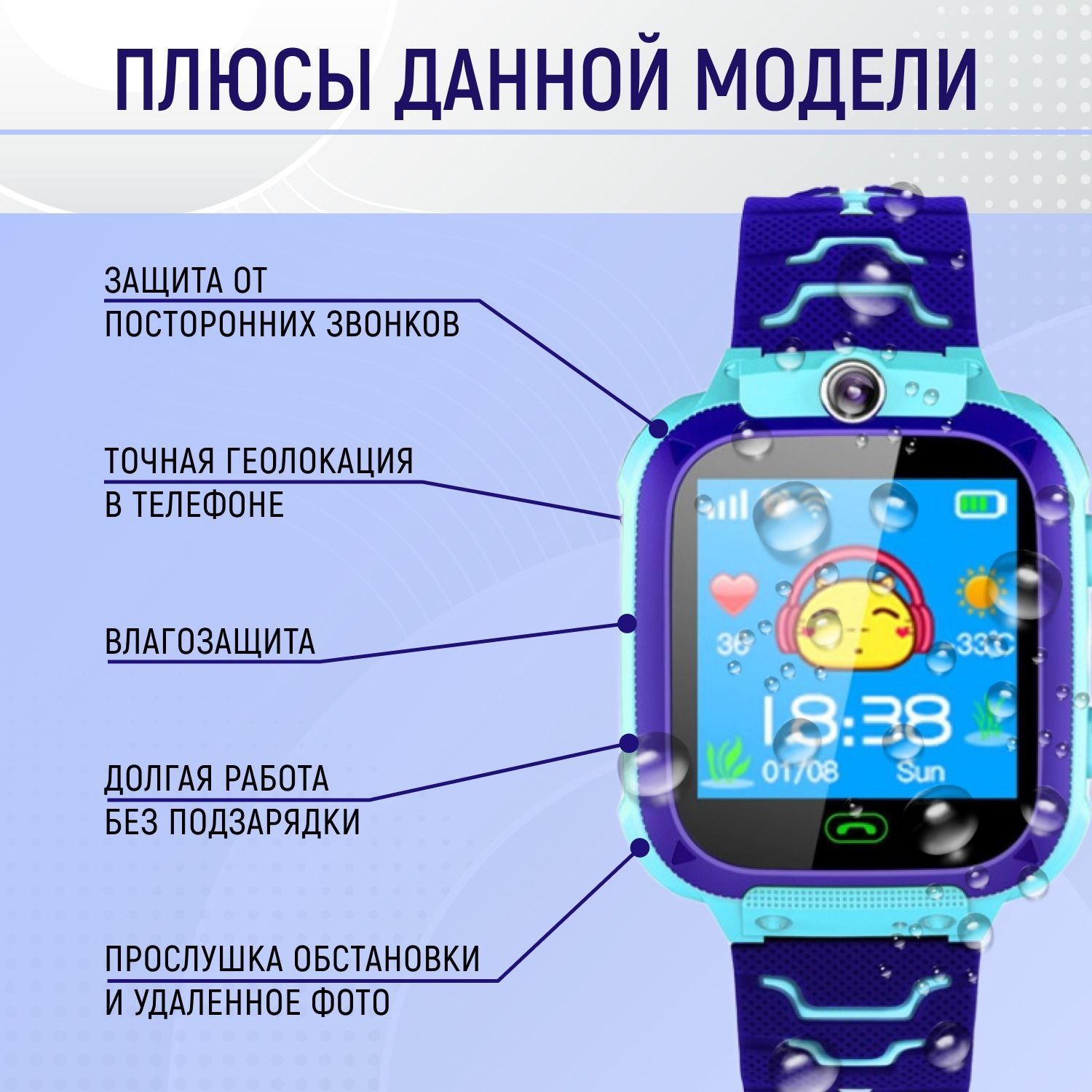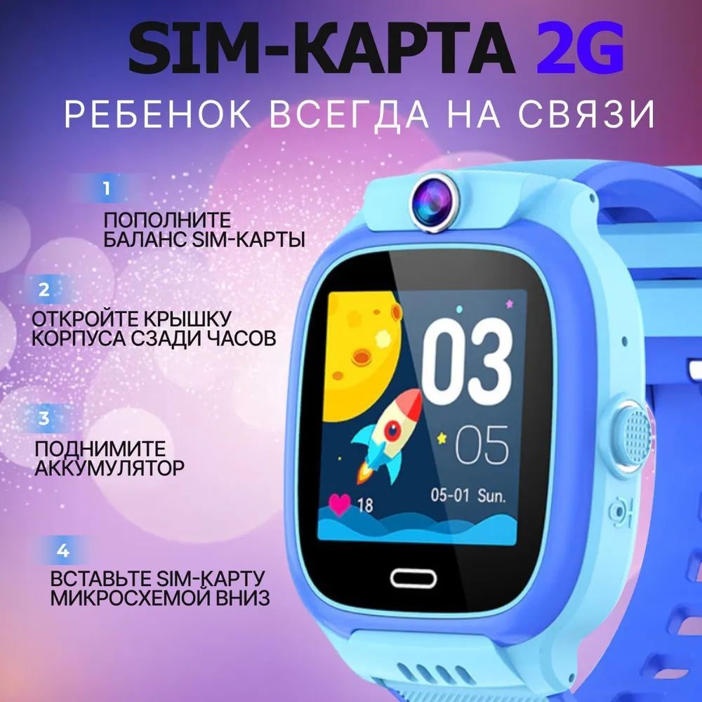 Умные смарт часы для детей с ремешком и аккумулятором Упаковка Зарядный кабель Инструкция (Сим-карта в комплектацию не входит)
