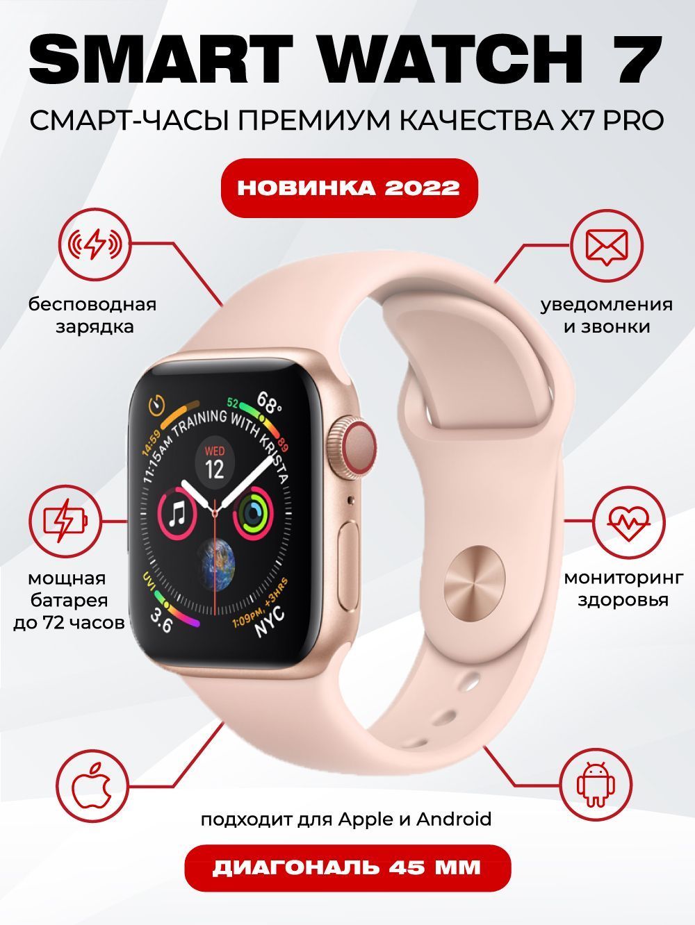 Описание: HVAC-Market новая модель Smart Watch серия X7 Pro. Смарт часы X7 PRO - это одни из самых продвинутых и качественных часов премиального качества с беспроводной зарядкой, поддержкой Siri и большим экраном 45мм. Часы имеют: новые функции, расширенные циферблаты, производительный чип Bluetooth 5.2, отзывчивый сенсор, качественную синхронизацию со смартфонами на платформах Android и iOS.