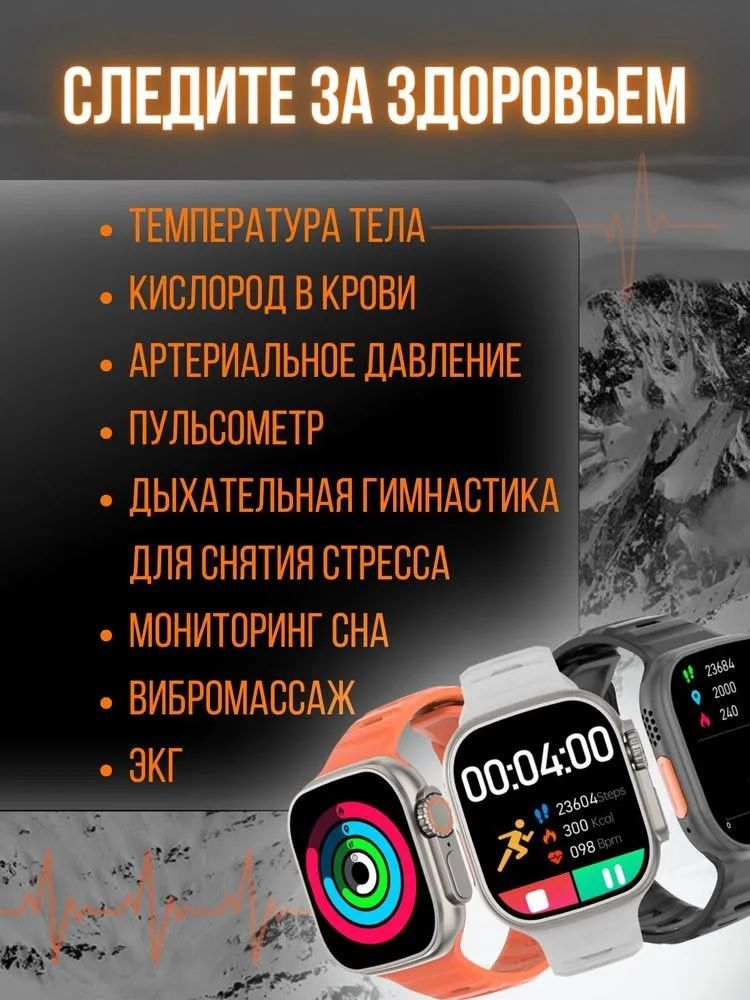 Умные часы X8 ultra, Смарт часы 8 серии 49mm, Smart Watch 8 series, Серебро Новинка осени 2022 года! Картина максимально полноэкранная и четкая, без рамок и бровей! Смарт вотч Х8 ультра оснащены большим и сочным 2-дюймовым экраном без рамок. 11 стилей меню и 240+ бесплатных циферблатов, а также возможность установить любое свое фото! Встроенные 2 мини-игры, которые помогут скоротать время. Синхронизация телефонной книги с часами (при звонке вы видите имя, а не номер). До 20 избранных контактов из телефонной книги. Стильный корпус Smart Watch 8 серии изготовлен из высококачественного сплава. Мощный процессор обеспечивает плавную работу анимации умных часов. Умные смарт часы X8 имеют модуль подключения Bluetooth 5.2, благодаря чему достигается максимальная стабильность работы. Они поддерживают подключение к смартфонам на платформах Android 5.0 и iOS.10.0 и выше. Настроить работу часов можно через приложение WearPro. Качественные микрофон и динамик позволяют отвечать на звонки и разговаривать прямо через умные смарт часы, не доставая смартфон! Очень удобно за рулем или в общественном транспорте. Часы имеют активное колёсико, а также дополнительную кнопку под ним. Умные часы X8 ultra имеют встроенные рингтоны. Теперь звук, а не только вибрацию, можно установить на входящие уведомления и будильник. Смарт часы X8 поставляются в качественной и презентабельной коробке. Умные часы мужские, умные часы женские, умные часы для детей, смарт часы для детей, смарт часы мужские, смарт часы женские - станут отличным подарком на любой случай! Поддерживают беспроводную зарядку на магнитной шайбе. Очень удобная функция “always on display”. Даже на погасшем дисплее продолжают четко отображаться время. 2 варианта отображения на выбор! ФУНКЦИОНАЛ • Прием / отклонение входящих звонков; возможность звонков/разговора через умные часы (данная функция особенно удобна за рулем, в общественном транспорте); • Полностью работающие колесико и кнопка под колесиком; • Улучшенный встроенный микрофон и динамик (Вам и Вас четко и громко слышно); • Уведомления о входящих и пропущенных звонках; • Сообщения из мессенджеров и соц. сетей (только чтение); • Возможность управлять музыкой смартфона, например, во время пробежки или за рулем; • Управление фотографированием с телефона; • Сменные ремешки подходят от smart watch. Поменять дизайн своих умных часов новым ремешком не составит абсолютно никакого труда! Есть фиксаторы ремешков. • Вибрация, которая поможет вам не пропустить ни одного важного уведомления; • Встроенные рингтоны. Можно установить встроенную мелодию входящее сообщение, будильник (на ранних моделях смарт часов можно было установить только вибрацию). • Возможность установки пароля на умные часы, чтобы вы сохранили свою конфиденциальность; • Синхронизация 20 контактов из вашей телефонной книги (при звонках на дисплее часов будет отображаться имя и номер телефона); • Улучшенные циферблаты. Более 500 вариантов циферблатов (и все бесплатные); • Большое разнообразие в выборе вида главного меню (11 вариантов); • Управление жестами; • Отслеживание женского цикла; • Будильник, секундомер, часы, калькулятор; • Поддерживают беспроводную зарядку. Удобная зарядка-таблетка в комплекте; • Функция напоминания о времени, проведенном в сидячем положении и о воде; • Измерение температуры тела, артериального давления, уровня ки