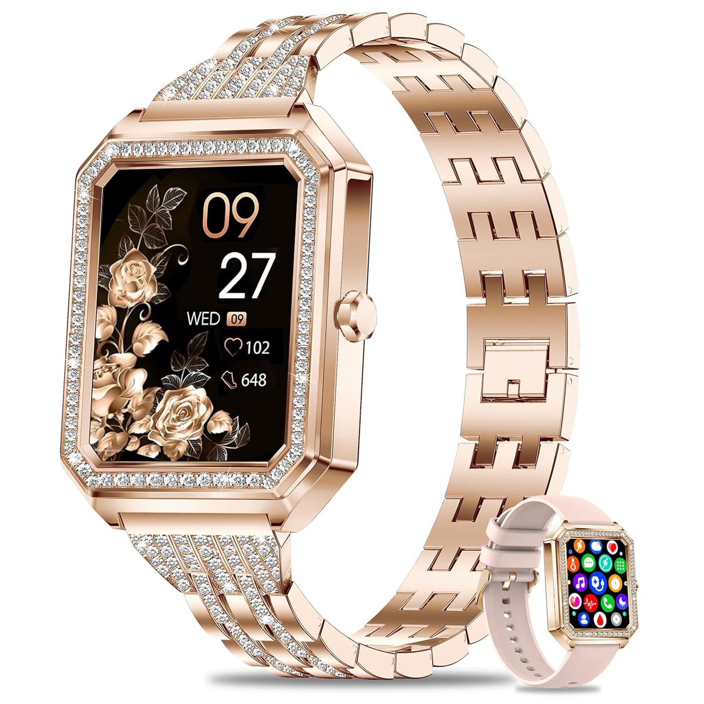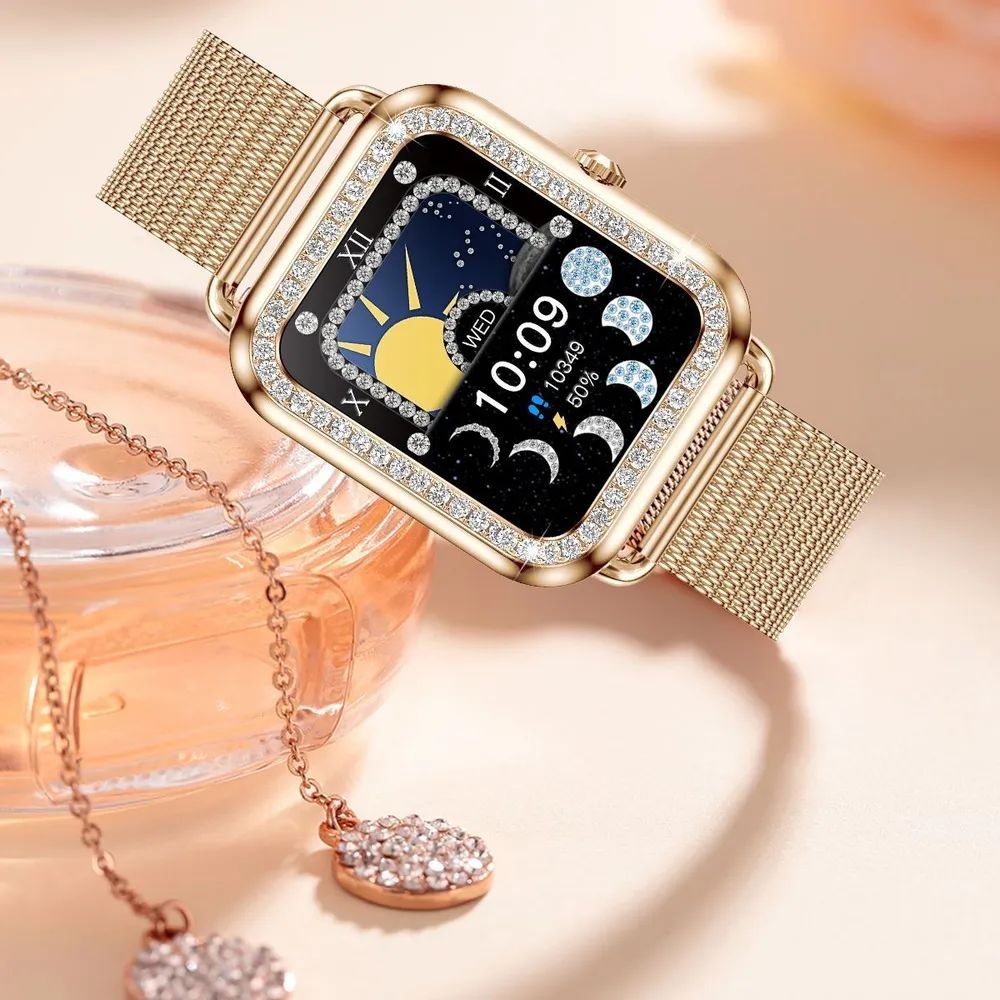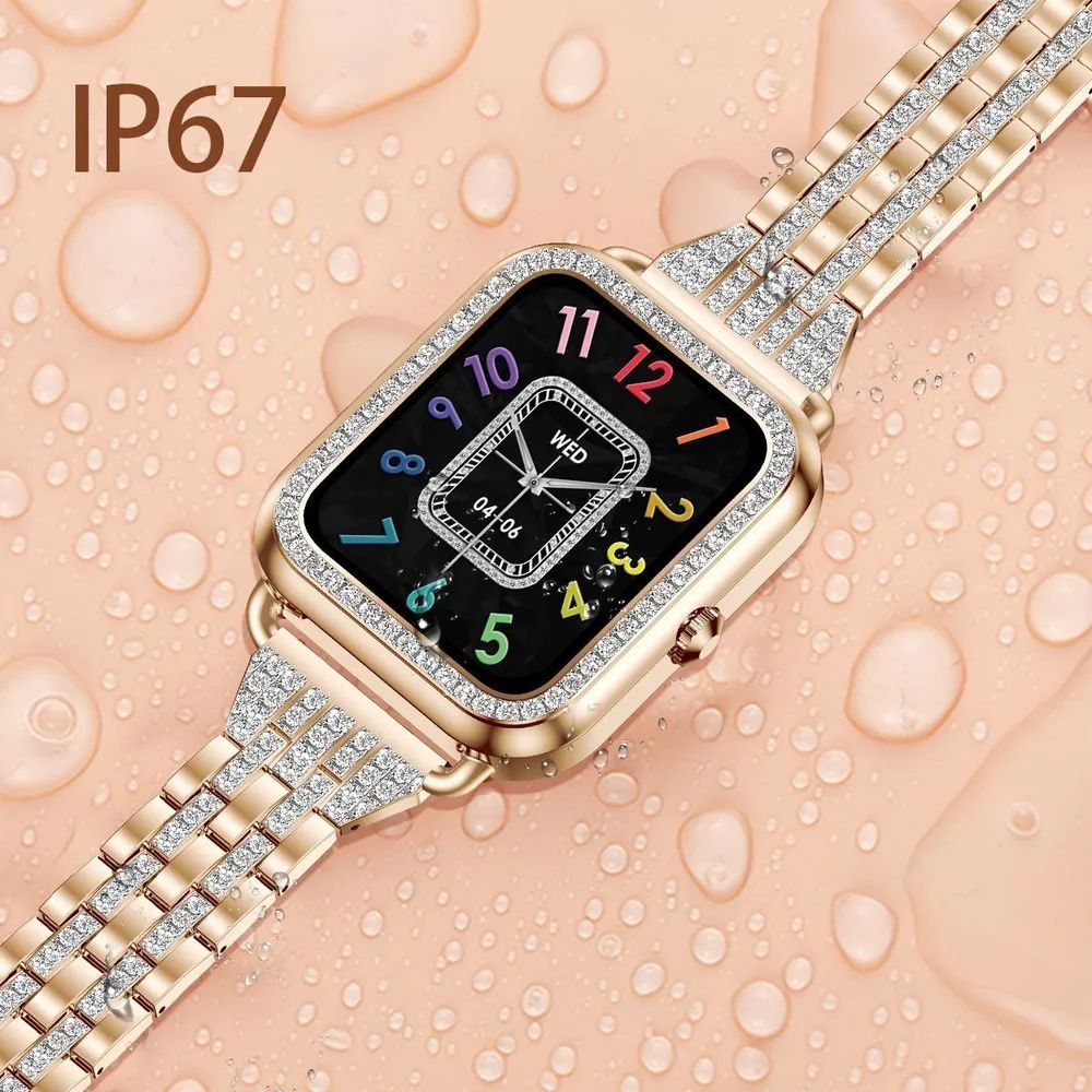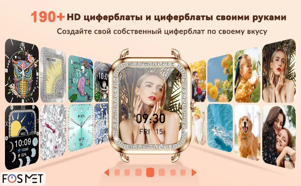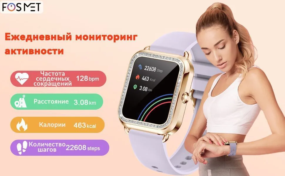 Описание: Совершенно новый сверхбольшой и сверхчистый экран1,57-дюймовый дисплей с разрешением 240 * 286 пикселей обладает более четкими визуальными эффектами и более высокой детализацией изображения.Женские умные часы FOSMET тщательно проработаны в деталях, которые больше подходят для тонких женских запястий.Сияйте как звездаРемешок из позолоченной стали с инкрустацией бриллиантов и узорами, сочетается с бриллиантовым циферблатом, чтобы вы сияли на вечеринке.Самые яркие женские смарт-часы в 2023 годуУникальный дизайн циферблата придает вашему запястью своеобразную роскошь.Мода и роскошь гармонично сочетаются, создавая идеальное сочетание.Будь то посещение торжественного ужина, светского раута или повседневного наряда, эти женские цельные часы станут вашим модным акцентом и будут излучать особый шарм.Функция вызова по BluetoothСмарт-часы FOSMET используют технологию подключения по Bluetooth 5.2, скорость соединения выше и стабильнее, а также оснащены высококачественными динамиками для отображения звука высокой четкости.Вы можете напрямую отвечать на звонки / совершать их, регулировать громкость, синхронизировать контакты и историю последних вызовов.Instagram Facebook, Instagram Instagram, Twitter и другие приложения получают информацию из SMS, WhatsApp, Facebook, Instagram, Twitter и других приложений.Следите за своим здоровьемВ женских фитнес-часах FOSMET используется новый оптический датчик движения, который может предоставлять более точные данные для отслеживания вашей повседневной деятельности, шагов, пройденного расстояния, времени упражнений, сожженных калорий. Эти умные часы также могут контролировать частоту сердечных сокращений, кровяное давление и кровяное давление на в любое время.Уровень кислорода и артериальное давление, анализ ночного сна, напоминание о сидячем положении, напоминание о питье воды и другие функции, он также может записывать и анализировать данные сна за 7 дней. Это поможет вам оставаться в форме по-научному и принимать комплексные меры по охране здоровья.Специально для женщинУправление менструальным циклом женщин Умные часы имеют 3 режима записи состояния женского здоровья: менструальный период, период подготовки к беременности и период вынашивания ребенка, что позволяет вам легко контролировать свою жизнь и проводить каждый особенный день со спокойной душой.Более 190 циферблатовциферблат поддерживает персональную настройку фотографий, а приложение объединяет более 190 различных стилей циферблатов. Эти женские умные часы оснащены классическим ремешком из нержавеющей стали и удобным силиконовым ремешком, что делает их подходящими для самых разных случаев.Интересный функциональный опытИсследуйте многофункциональные женские умные часы, устанавливающие спортивные цели, управляющие камерой, музыкой, погодой, играми, будильником, секундомером, таймером, вращающимся запястьем для подсветки дисплея и другим практичным оборудованием, которое сделает умные часы FOSMET более совершенными.Умные часы совместимы с большинством смартфонов, оснащенных системой Android 4.4 и iOS 8.0 или более поздней версией.Полная зарядка занимает всего 2 часа, и ее можно использовать в течение 3-4 дней или в режиме ожидания в течение 10 дней.19 спортивных режимов и уровень защиты IP67Фитнес-часы поддерживают 19 спортивных режимов (ходьба, езда на велосипеде, йога, плава