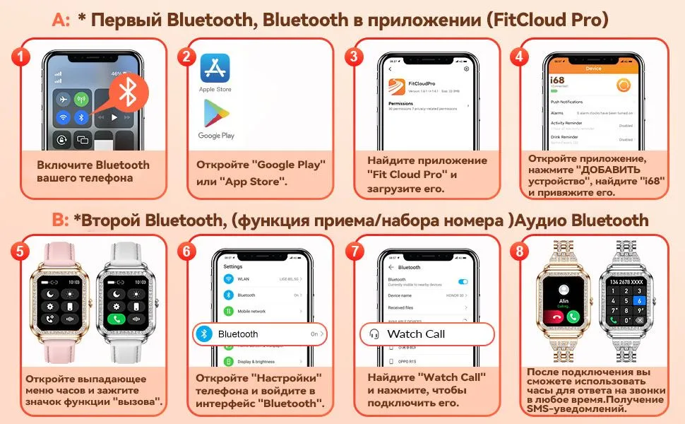 Войдите в настройки Bluetooth мобильного телефона и подключитесь к аудиосистеме Bluetooth часов (обратите внимание, что Bluetooth часов должен быть включен, второй раз - это аудиосвязь, которая является ключом к совершению вызова).