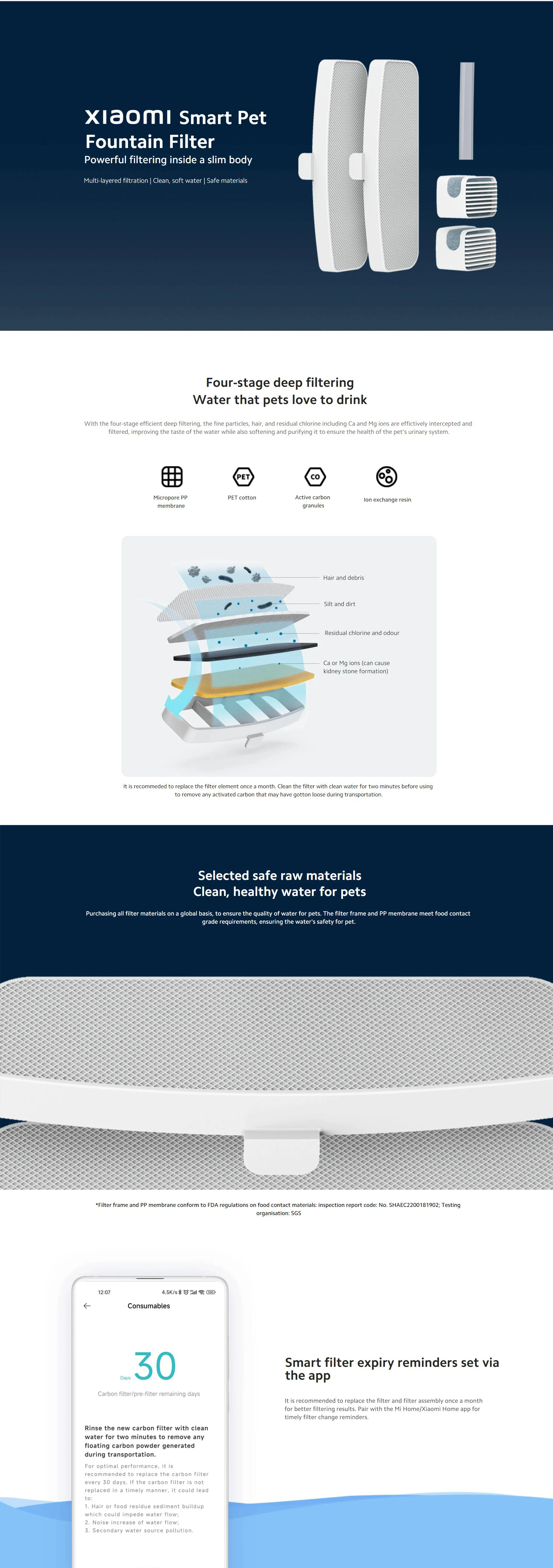 Чтобы обеспечить лучший фильтрующий эффект, рекомендуется заменять фильтрующий элемент и фильтрующий узел один раз в месяц. Подключитесь к приложению Mijia, вовремя напомните о замене фильтрующего элемента. Заказ в один клик на набор фильтрующих материалов, умный и внимательный.
