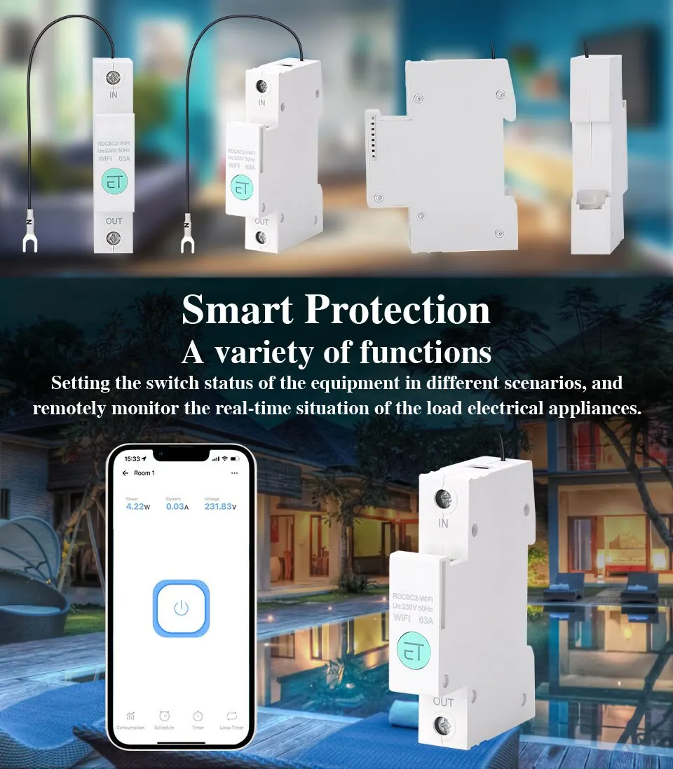 Умный автоматический выключатель 63A WiFi 1P с измерительным таймером на Din-рейке, релейный переключатель Ewelink App для умного дома Alexa Google Home