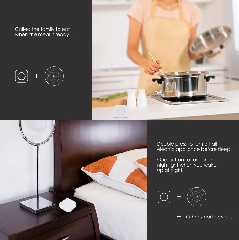 Интеллектуальный беспроводной переключатель Aqara-это простое и портативное устройство с одной кнопкой. Однако он может управлять многими интеллектуальными устройствами. Благодаря беспроводному подключению ZigBee этот Интеллектуальный переключатель можно использовать как дверной звонок, кнопку переключения, пульт дистанционного управления. Его очень удобно использовать. Более того, клей на его задней стороне и небольшой размер позволяют наносить или наклеивать куда угодно.