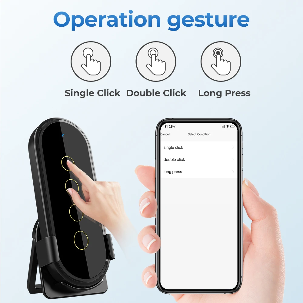 Этот интеллектуальный пульт дистанционного управления Tuya Wifi Zigbee оснащен изогнутым закаленным стеклом 2.5D с высокочувствительными сенсорными кнопками для легкой очистки. Настраенный с помощью приложения, вы можете управлять Zigbee (использовать со шлюзами, не входят в комплект) или продуктами Wi-Fi, включая интеллектуальную розетку, Интеллектуальный переключатель, интеллектуальную лампочку, дверной магнит, измеритель температуры и влажности и т. Д. Вы можете поделиться общими элементами управления со своей семьей, И с групповой функцией, которая поддерживает закрытие или открытие группы устройств вместе, это более удобно.