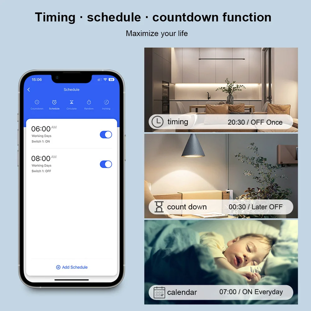 2. Двусторонний переключатель управления:Функция Двойного управления обновляет двусторонний переключатель управления, не изменяя дизайн помещения проводки.
