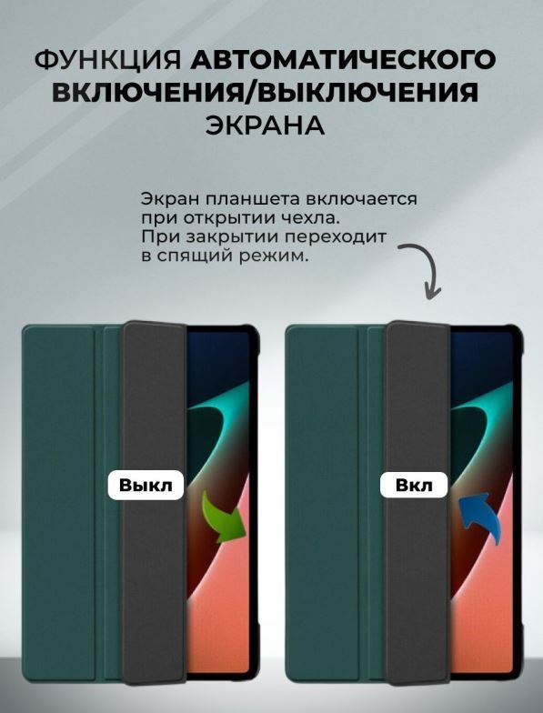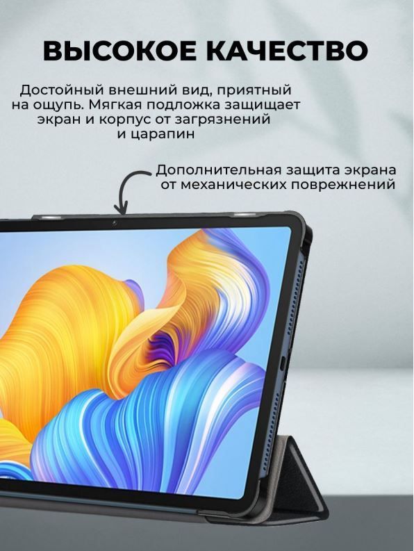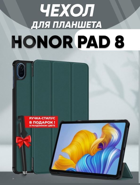 Описание: Чехол-книжка для планшета Kakusiga Honor Pad 8 12 дюйма, 2022 года, зеленый, станет стильным украшением и надежной защитой для Вашего устройства. С ним ваш планшет надолго сохранит свой первоначальный внешний вид. Защитный чехол изготовлен из термопластичного кожаного материала PC PU , полностью покрывает планшет, защищая переднюю и заднюю часть. Внутренний вкладыш выполнен из мягкого силикона, который плотно удерживает планшет внутри чехла. Он надежно защитит как корпус, так и дисплей планшета от царапин, потертостей, сколов и других механических повреждений. Одно из ключевых преимуществ, которое вы непременно оцените - возможность трансформировать чехол в подставку для планшета для просмотра видео, фильмов или работы на устройстве, имеет 2 фиксированных положения. Чехол имеет вырез для камеры и предоставляет доступ ко всем портам и кнопкам управления. Функция умный чехол - выполняет блокировку или разблокировку устройства путем закрытия или открытия обложки. Выберите свой цвет под настроение, подчеркните свою индивидуальность в сочетании с максимальным удобством.