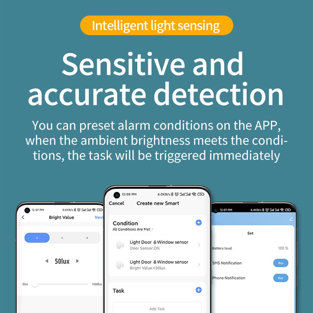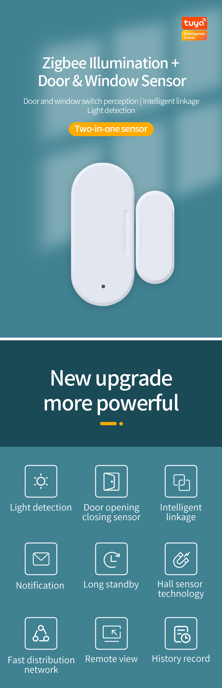 Умный датчик окон и дверей Tuya Zigbee 3,0 с датчиком освесветильник ности