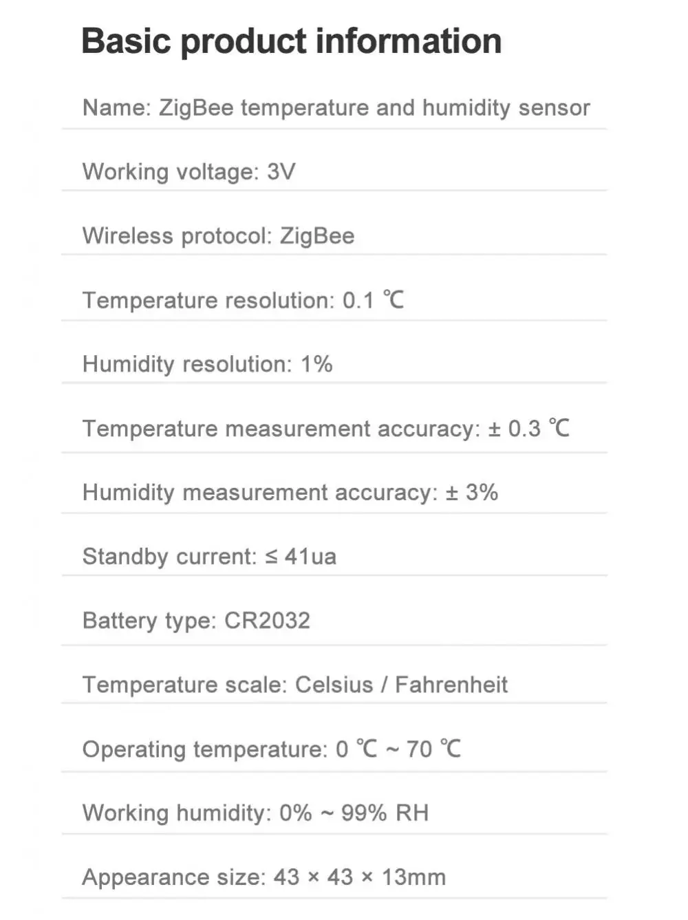 Название продукта: Датчик температуры и влажности Zigbee