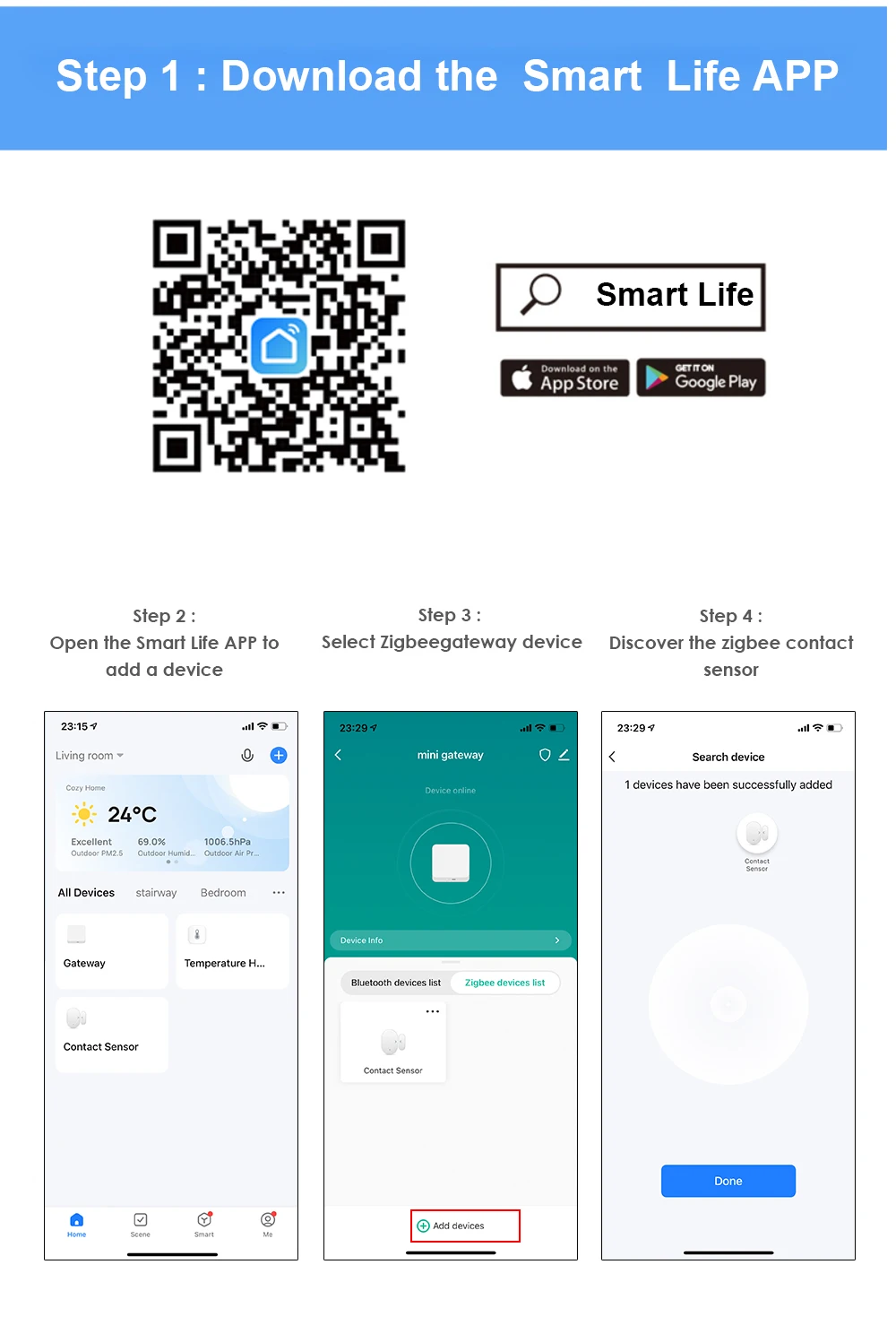 1. Умный датчик двери и окна Tuya ZigBee: беспроводной шлюз Tuya ZigBee должен работать с датчиком двери и окна, а также с различными интеллектуальными продуктами ZigBee.