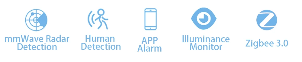 Интеллектуальный детектор присутствия человека: датчик присутствия человека использует радар миллиметровой волны, воспринимая движение человека и статическое присутствие. Он может обнаруживать мельчайшие движения, даже дыхание и тепловое биение.