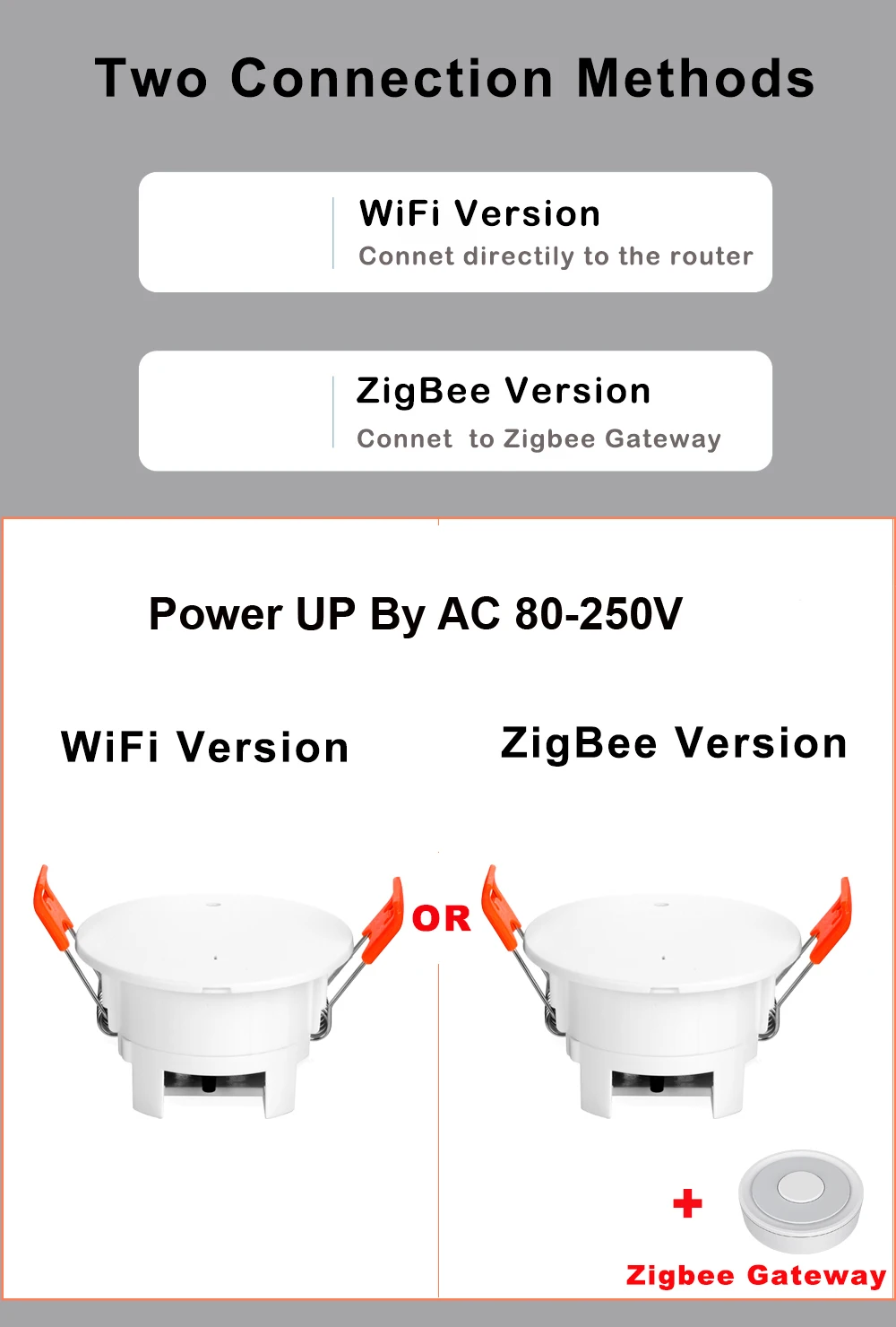 Умный детектор присутствия человека Tuya WiFi/ZigBee, миллиметровый радиолокационный датчик обнаружения для домашней безопасности и энергосбережения