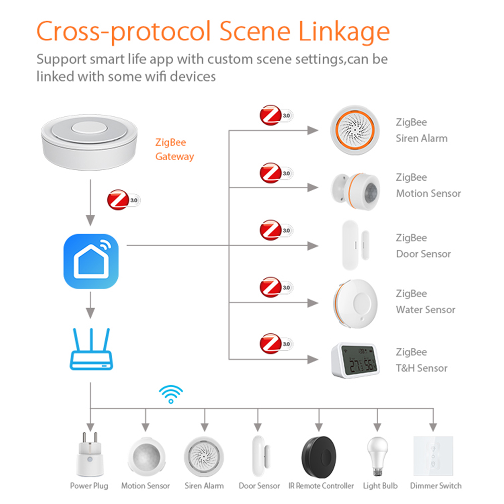 Умный дом Tuya ZigBee Gateway, хаб с удаленным датчиком прожектора воды, работает с приложением