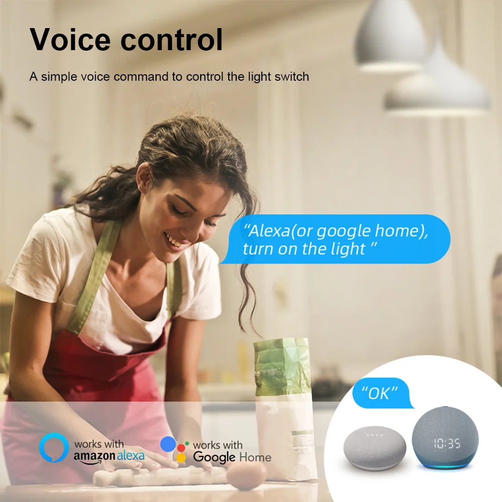 Умный дом, Wi-Fi выключатель, беспроводной голосовой пульт дистанционного управления освещением, Wi-Fi интеллектуальный выключатель, работает с Alaxa Google Home