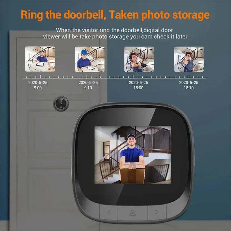 6 Функция дверного звонка: когда посетитель звонит в дверной звонок, будет звонить цифровой дверной глазок и снимать хранилище фотографий, вы можете проверить его позже