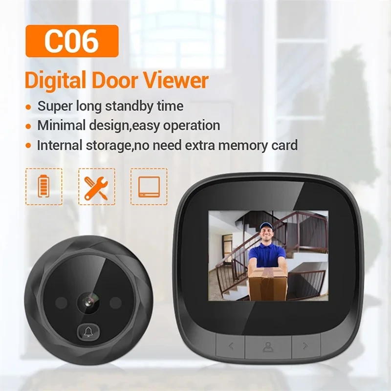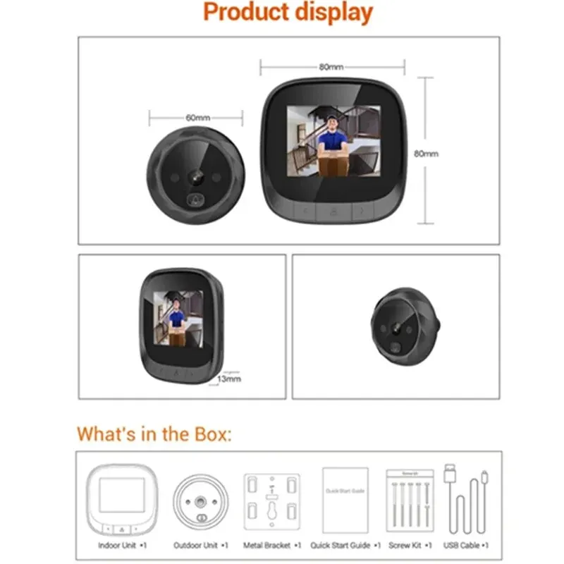 Умный дверной звонок HD кошачий глаз с углом обзора 2,4 дюйма и углом обзора 90 градусов