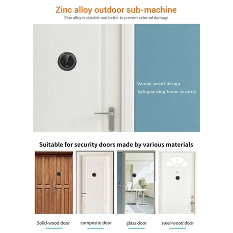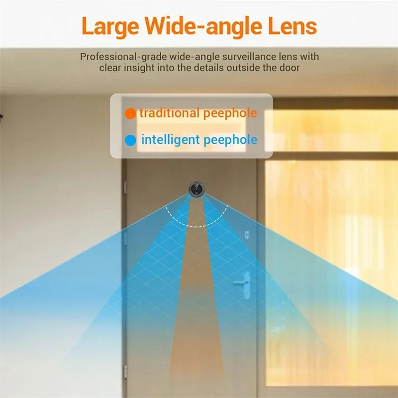 3 Широкоугольный объектив 90 °: оснащен широкоугольным объективом 90 °, четким пониманием деталей за дверью для уменьшения угроз безопасности.
