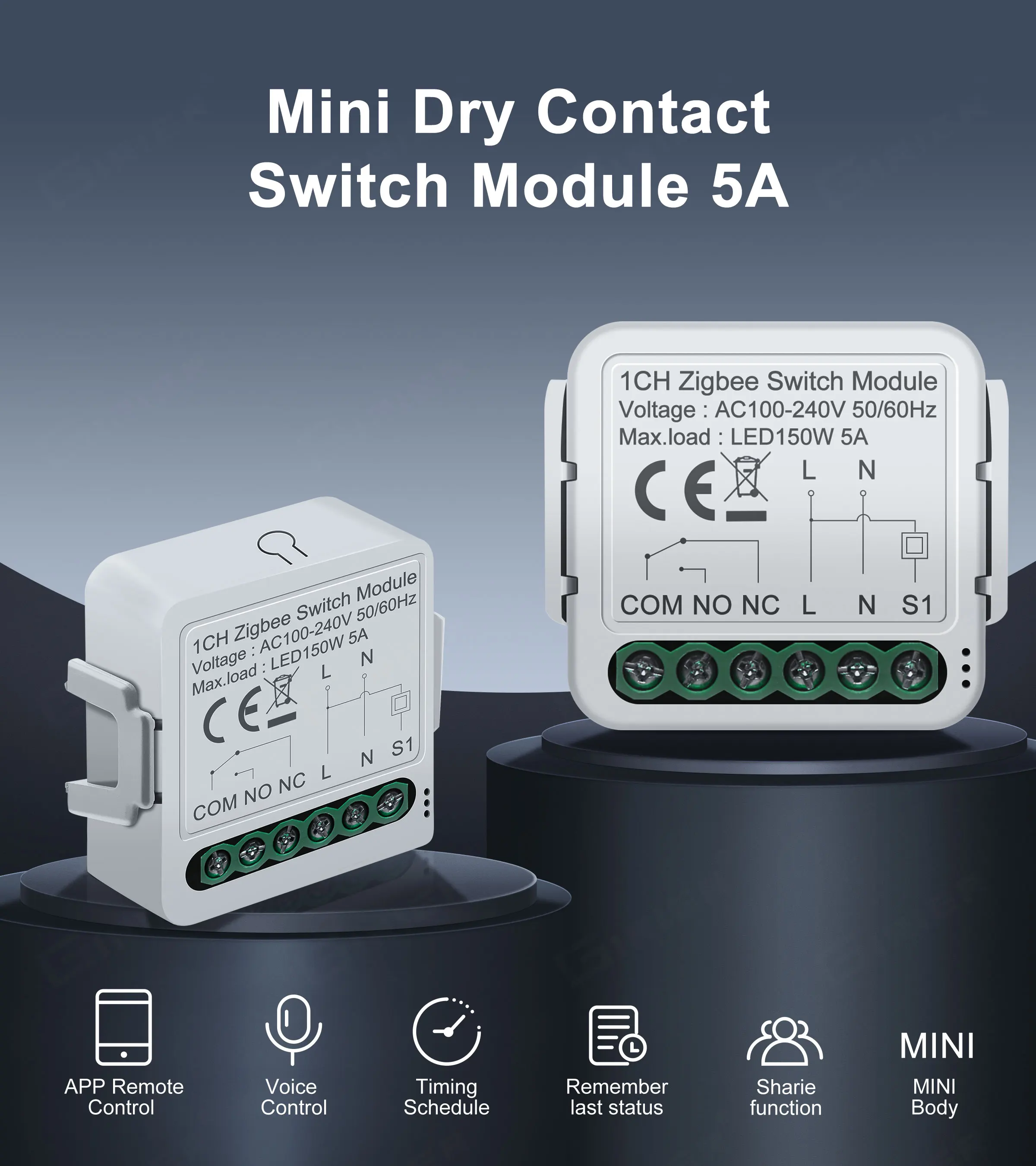 Умный модуль переключателя ZigBee GIRIER, сухой контакт, 5 А, реле выключателя для самостоятельной сборки, 12/24 В постоянного тока, 100-240 В переменного тока, работает с Alexa Hey Google Alice