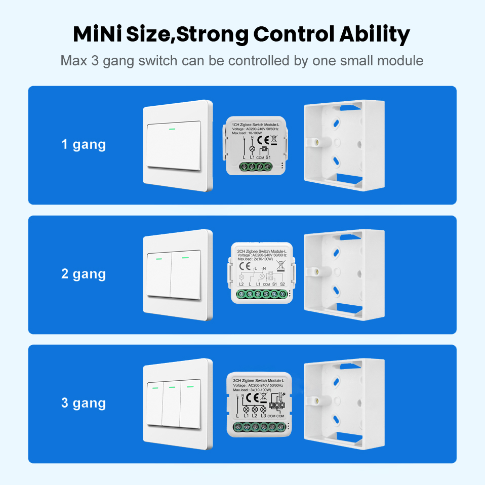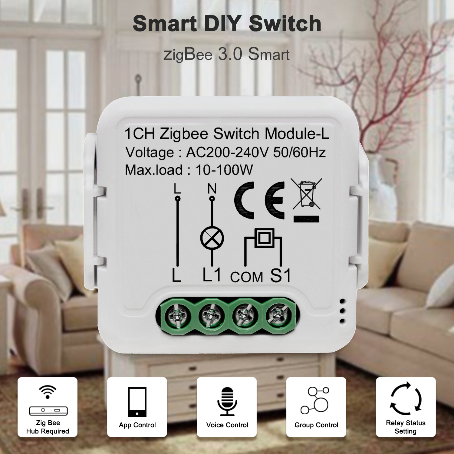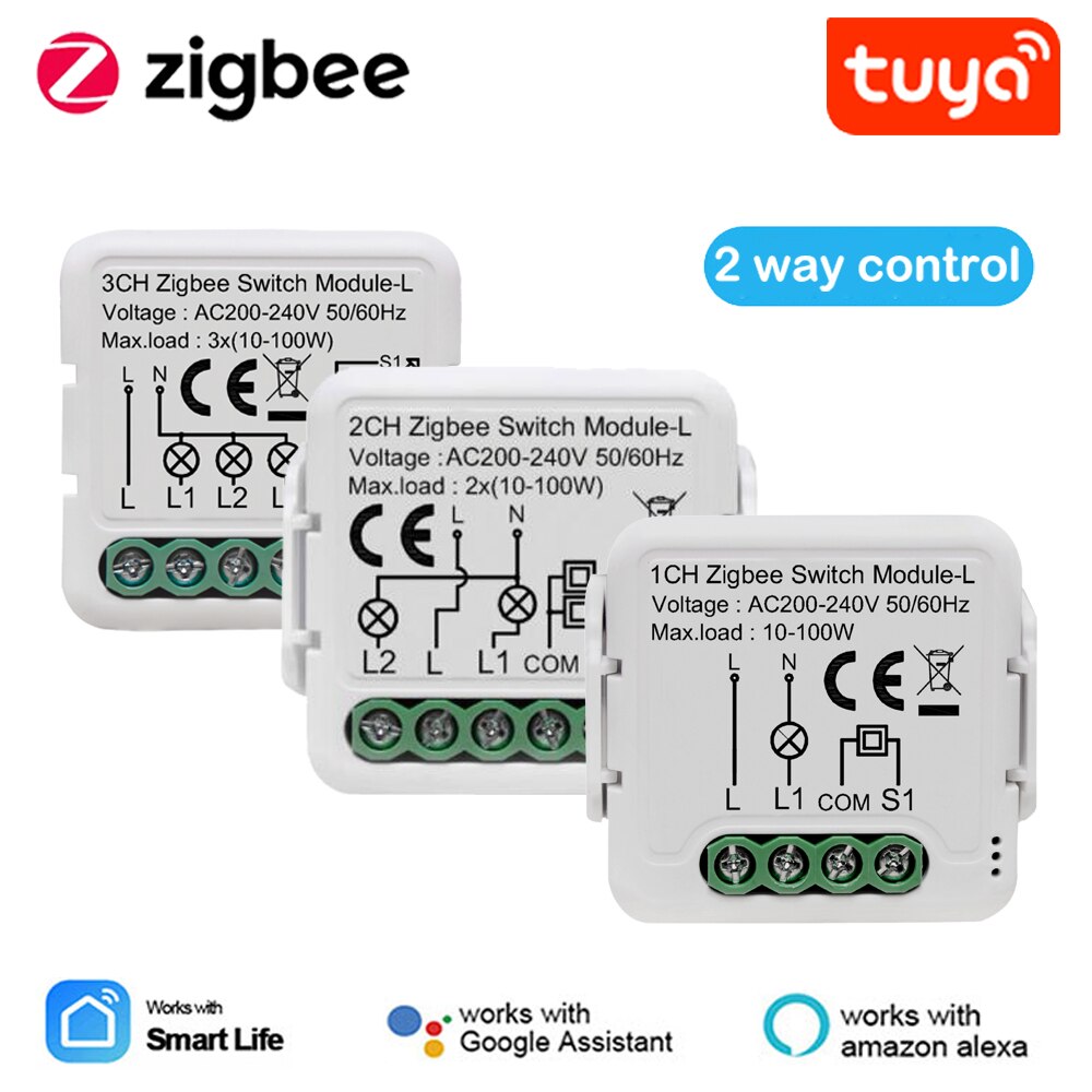 Умный модуль переключателя ZigBee Tuya, не требует нейтрального провода, 10 А, выключатель светильник «сделай сам» для умного дома, работает с Alexa Google Home