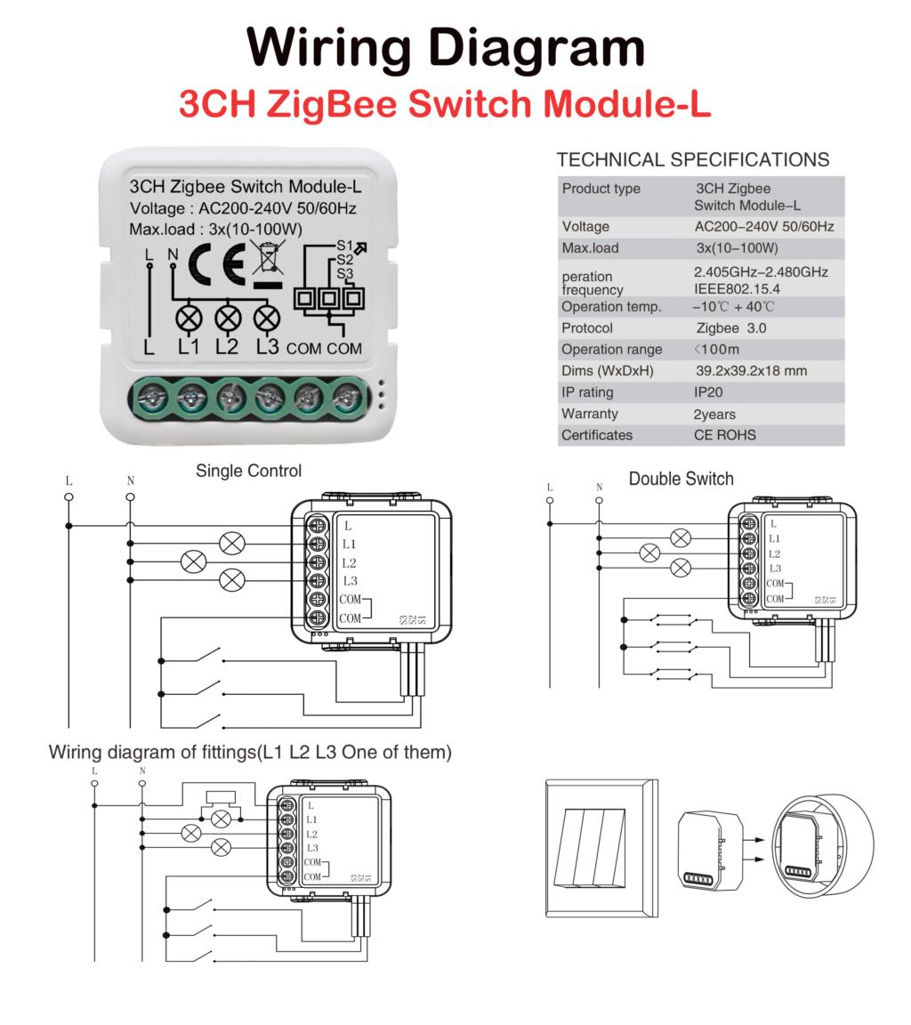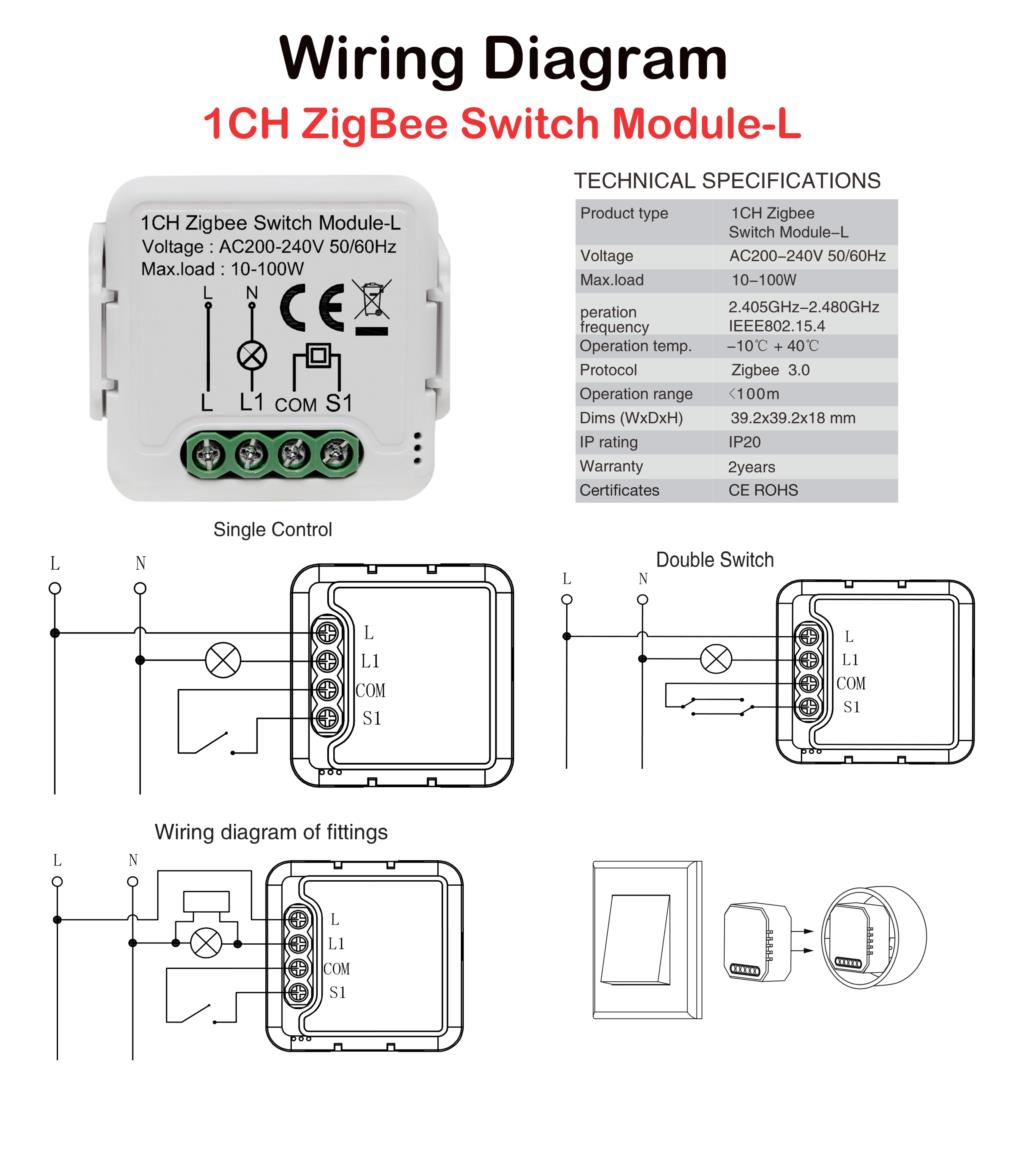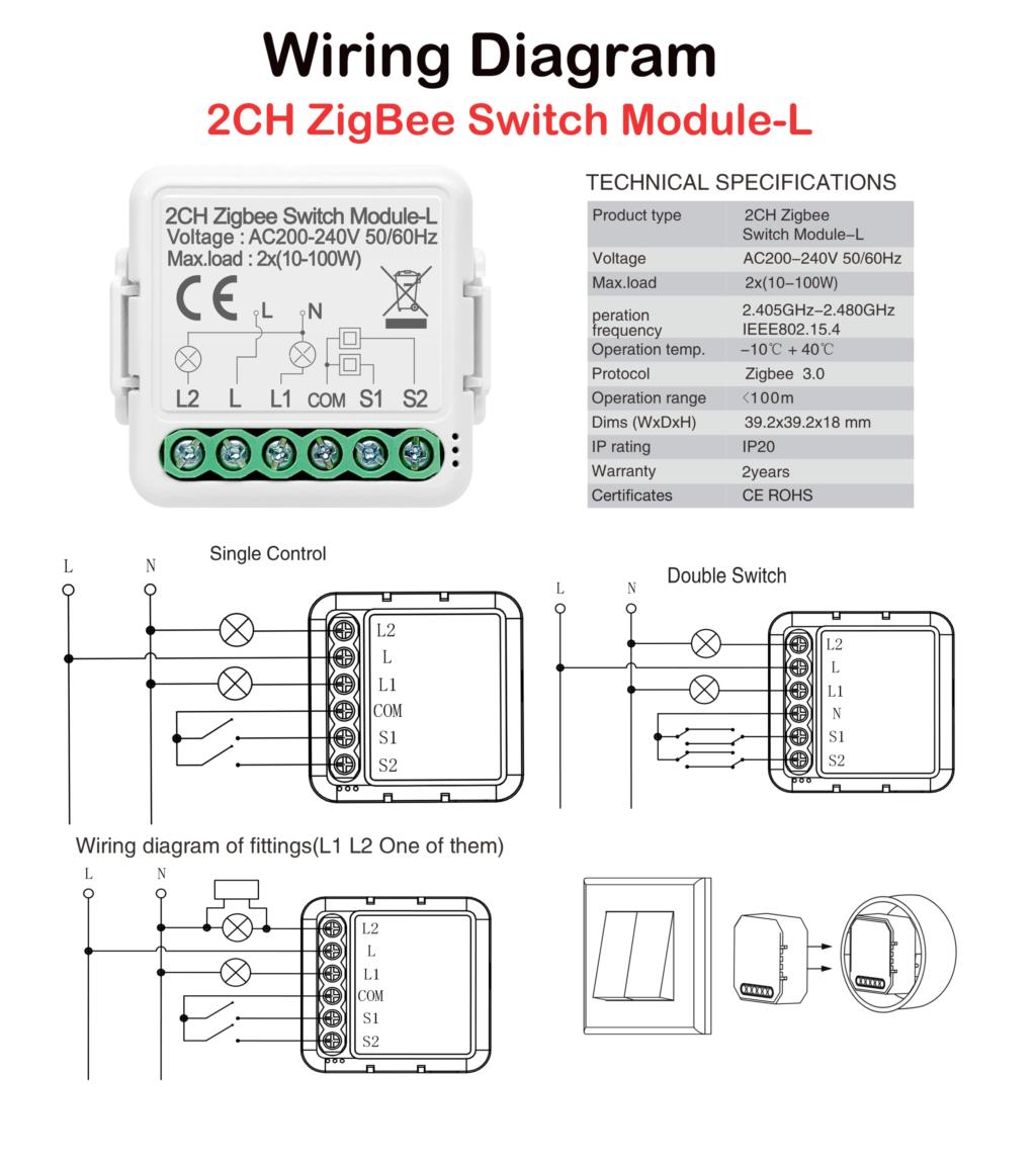 Умный модуль переключателя ZigBee Tuya, не требует нейтрального провода, 10 А, выключатель светильник «сделай сам» для умного дома, работает с Alexa Google Home