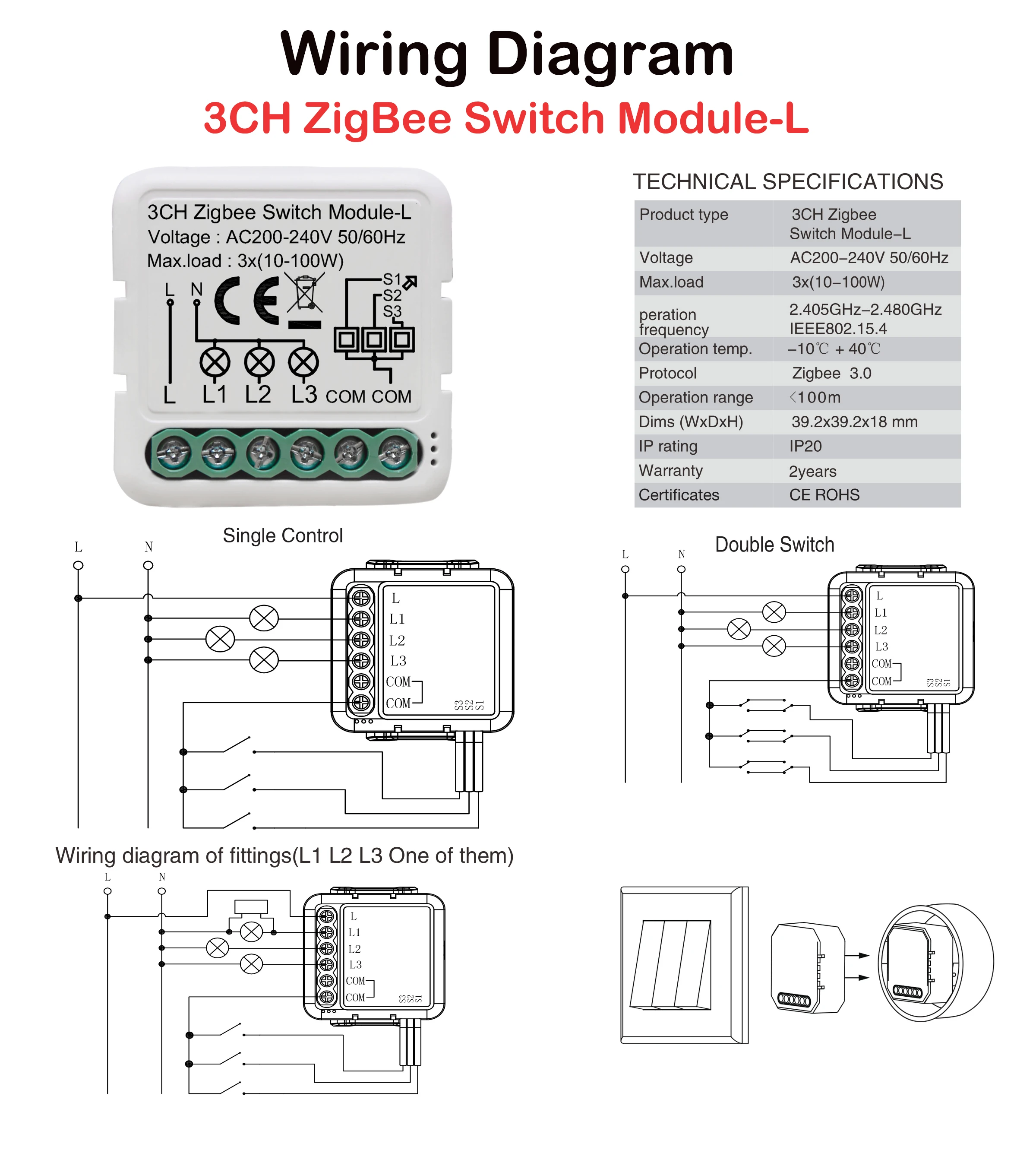 2. Этот интеллектуальный модуль выключателя света не поддерживает регулируемую лампу, интеллектуальную лампочку и полосу света.