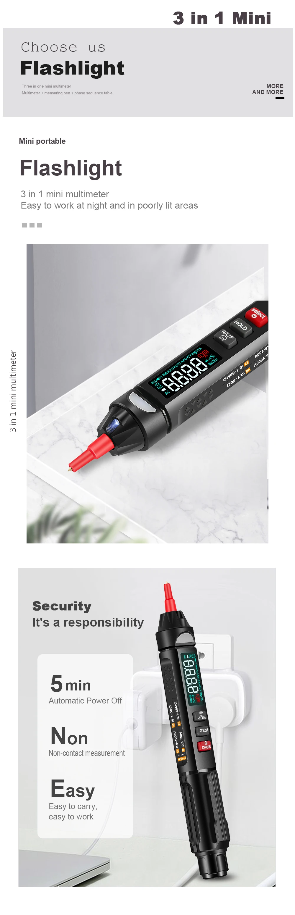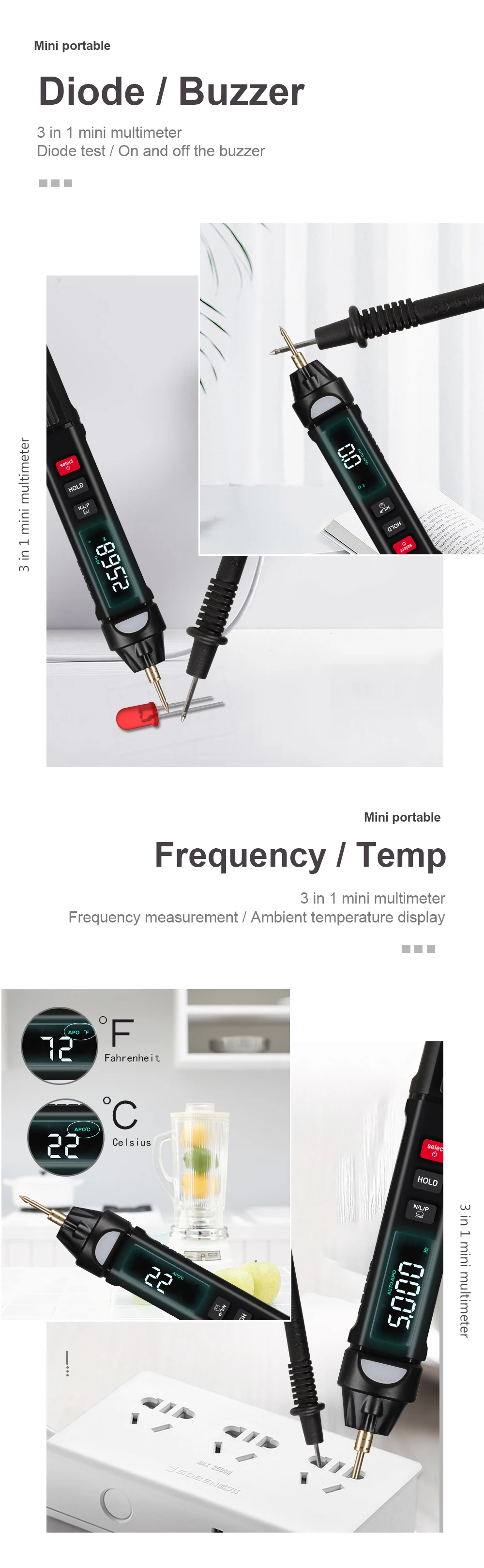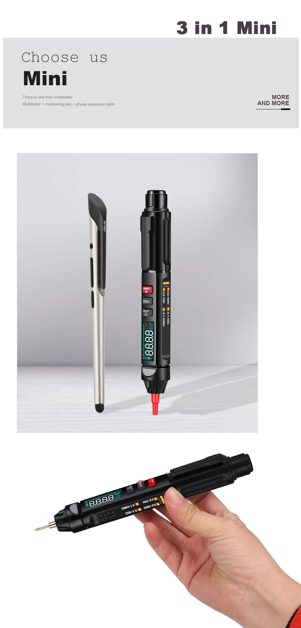 This tool is pen-type intelligent multimeter, with the large display screen and multifunctions such as direct current and AC voltage measurement, voice broadcast, resistance and capacitance measurement, also with the flashlight and backlight. If you need it, you can have a try.