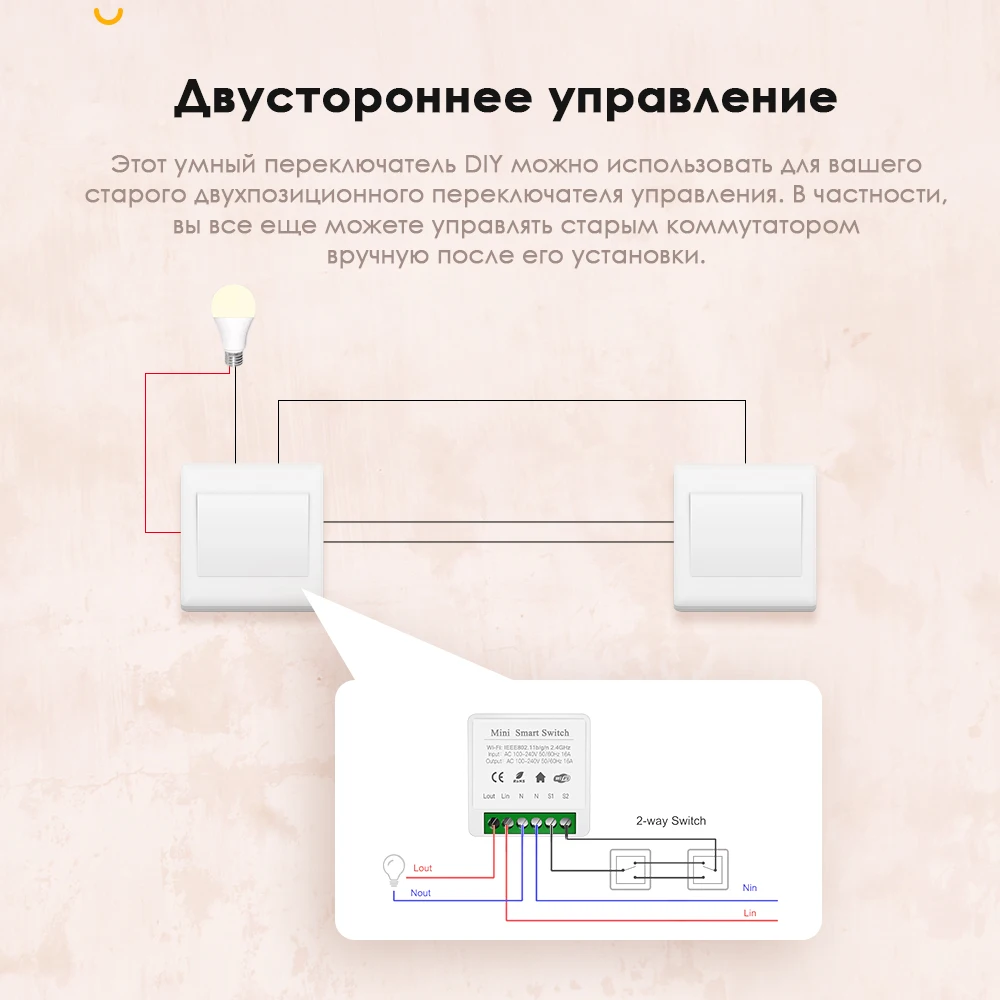 Умный переключатель Tuya Wifi 16A, мини-реле, двухстороннее управление, синхронизация умного дома, приложение Tuya Smart Life для Alexa, Google Home, Яндекс, Алиса