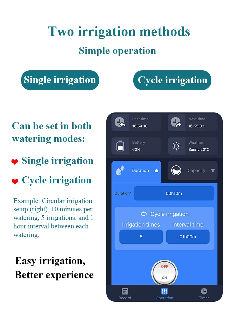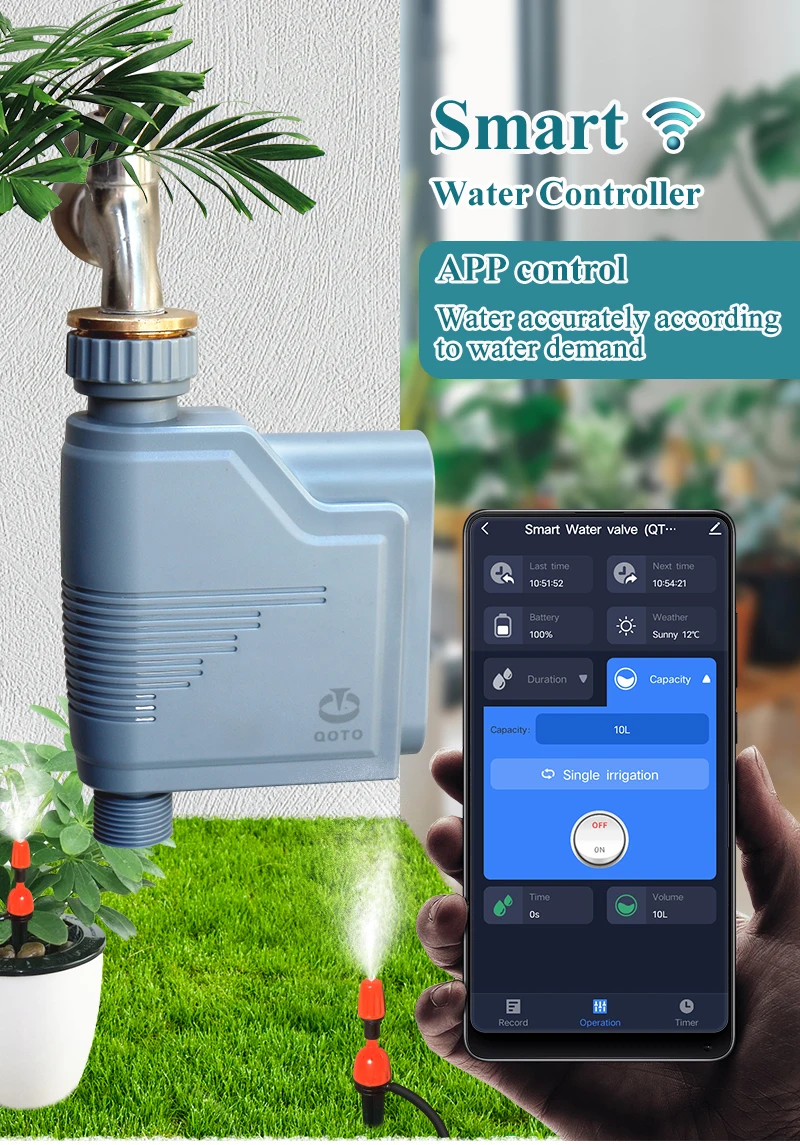 Объем и время можно контролировать с помощью интеллектуального контроллера клапана, который подходит для орошения сада и фермы.