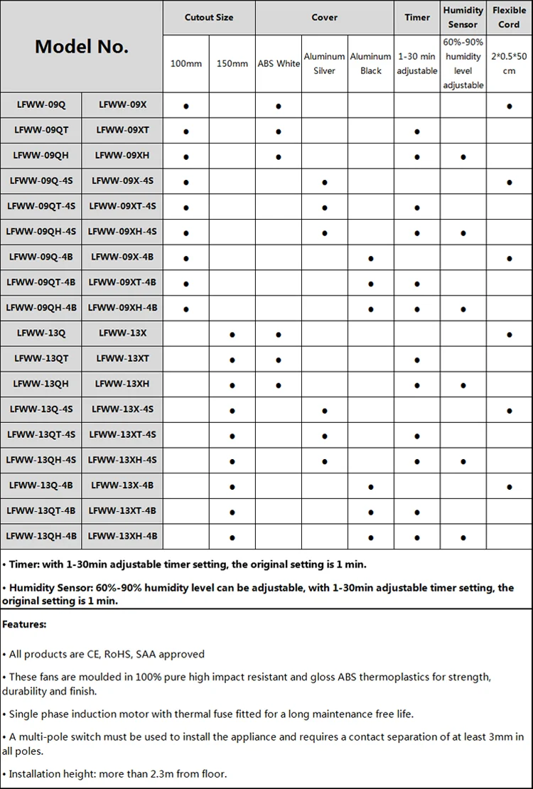 ! ! Все вентиляторы с Шарикоподшипниковый двигатель с тепловой защитой.