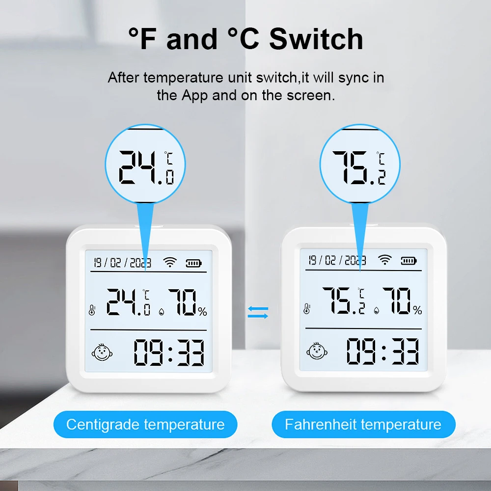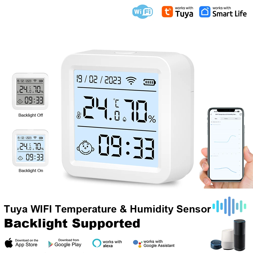 Умный Wi-Fi датчик температуры и влажности Tuya, комнатный гигрометр, термометр с ЖК-дисплеем, поддержка Alexa Google Assistant