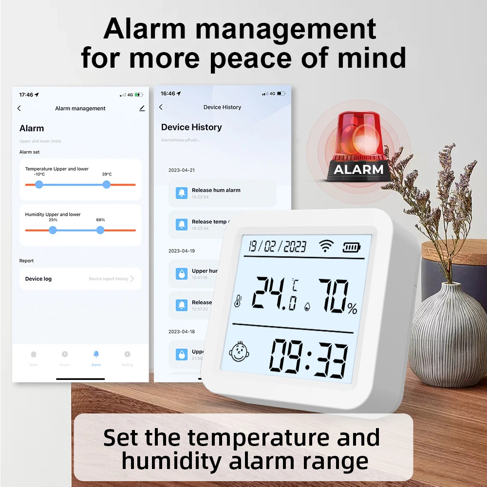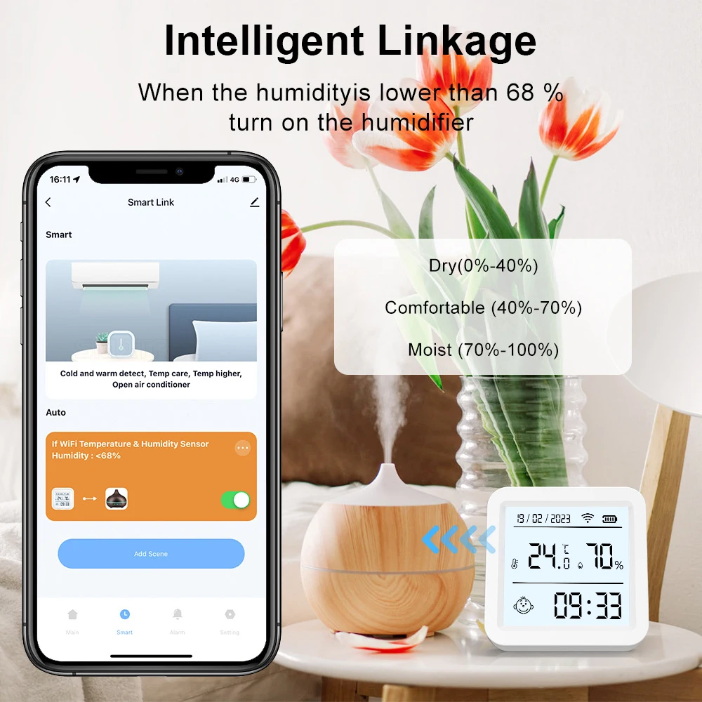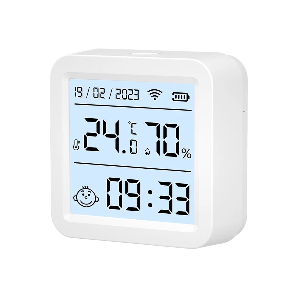 Вы можете удаленно просматривать температуру и влажность через смартфон с помощью приложения, tuyasmart или smart life.