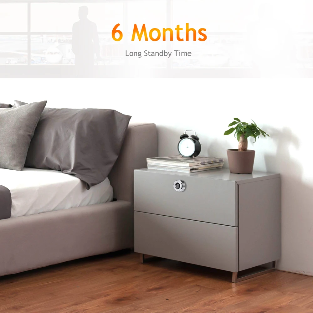 Ключи больше не нужны! Наш умный замок специально разработан для ящиков и шкафов. Разблокировка отпечатков пальцев и приложений, 0.5s быстрого ответа, 100 наборов отпечатков пальцев, 6 месяцев долгого ожидания, блокировка отпечатков пальцев безопасна, удобна и практична.