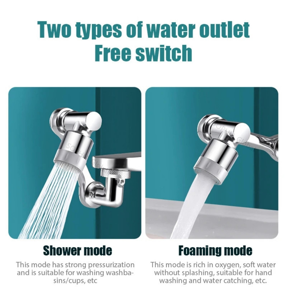 ❤Поверните водяную форсунку влево и вправо, чтобы выбрать два разных режима воды: режим душа и пузырьковый режим. Режим душа позволяет под высоким давлением смывать пятна вокруг умывальника или кухонной раковины; режим пены позволяет мыть лицо, рот, посуду и другую тонкую очистку.