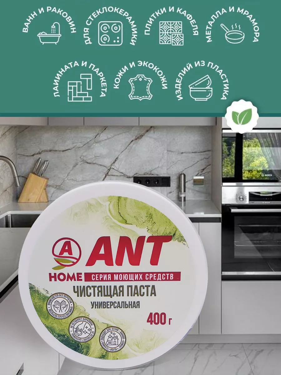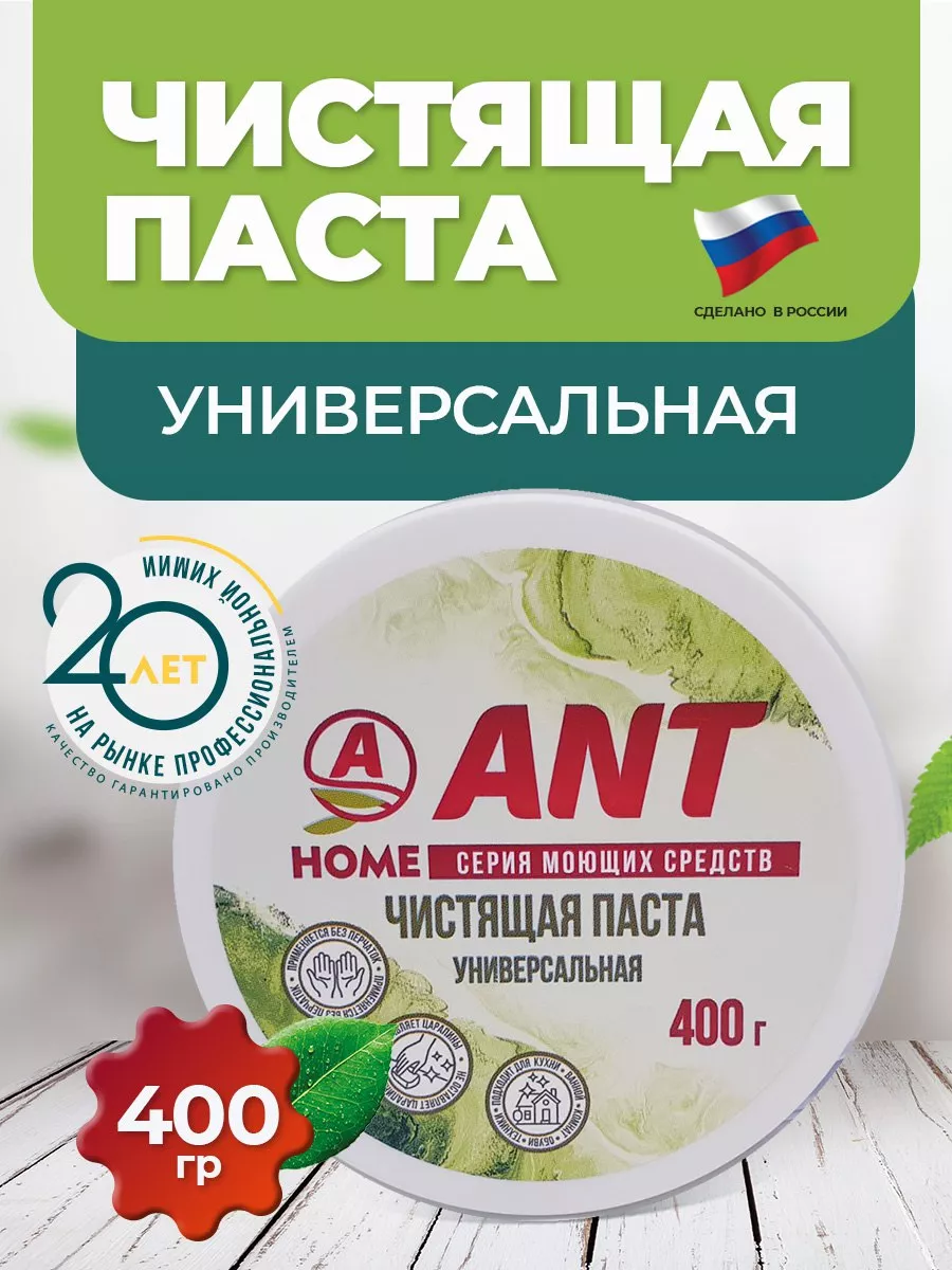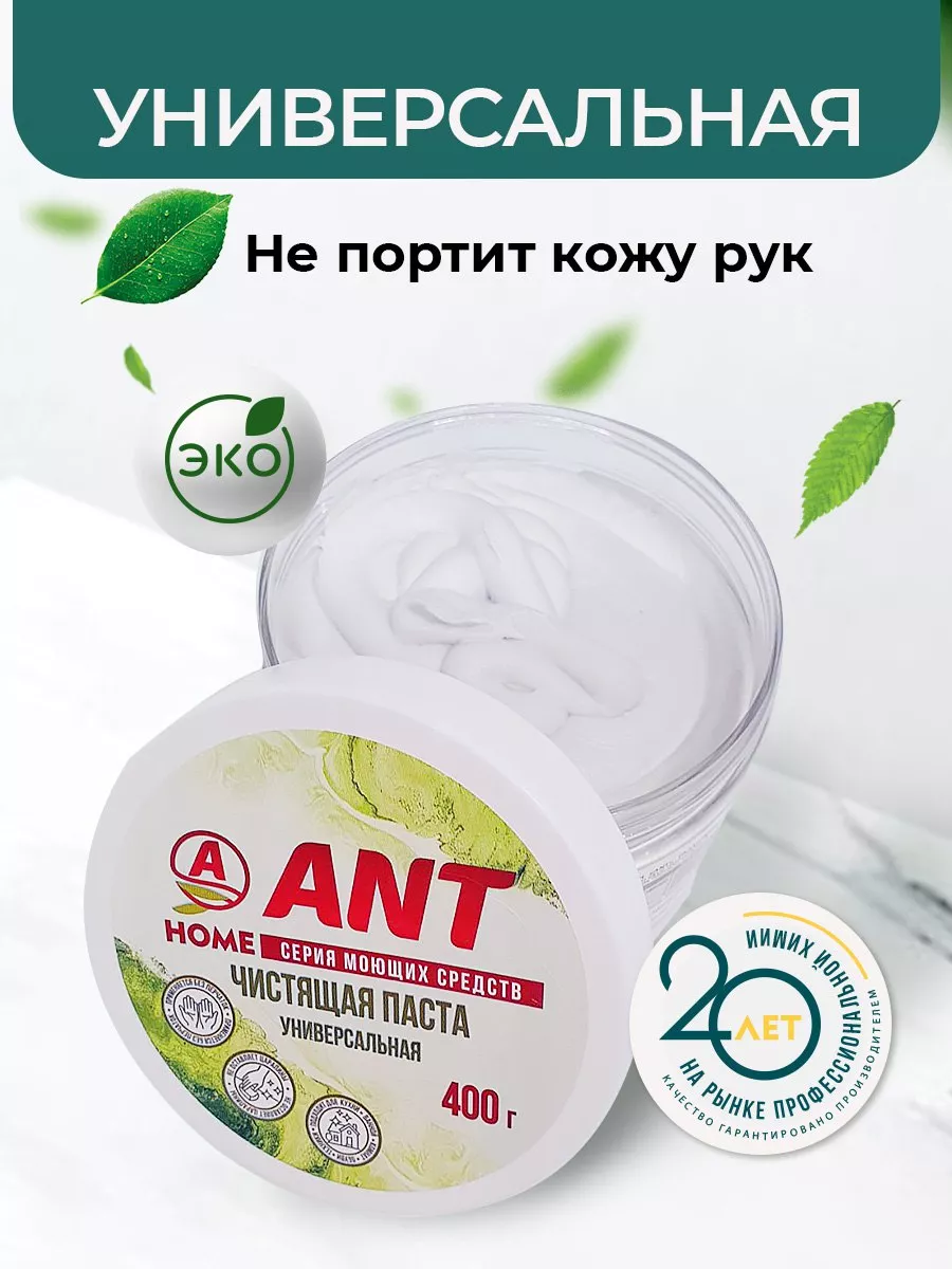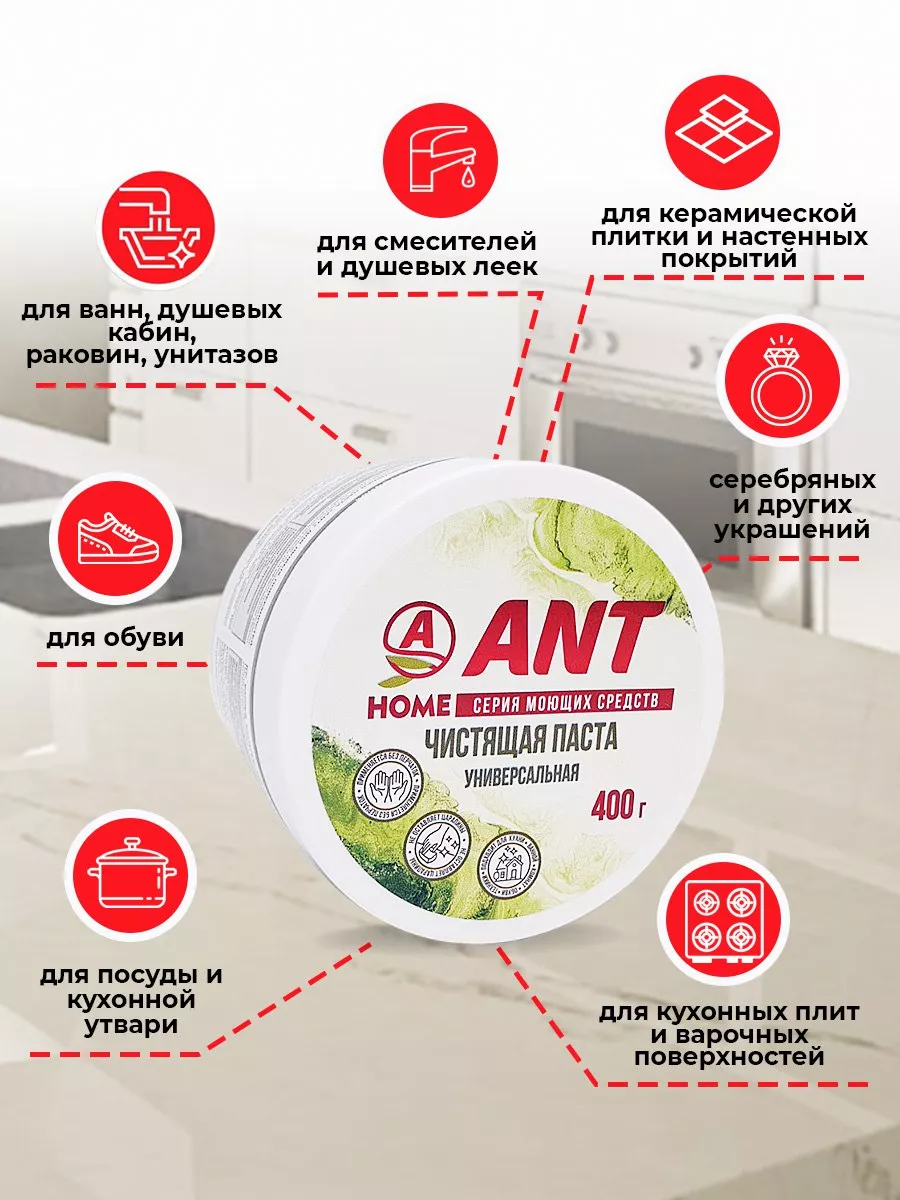 Описание: Хотите, чтобы ваша кухня, ванная комната и весь дом всегда сиял чистотой и свежестью? Представляем вам нашу универсальную чистящую пасту ЭКО, которая обеспечит вам идеальное очищение в каждом уголке вашего дома. Наш продукт сочетает в себе силу и эффективность, чтобы справиться с самыми трудными загрязнениями. Паста ANT для хозяйственно-бытовых нужд: для чистки ванн, раковин, кухонной посуды, плит, кафеля, унитазов. Для чистки твердых покрытий стен, полов. Средство применяется для удаления загрязнений с различных поверхностей, а также удаления производственных загрязнений кожи (сажи, масел, металлической пыли и др.). Подходит для очистки сильнозагрязнённых рук при авторемонтных, малярных и других работах. Универсальная чистящая паста ANT устранит даже самые въевшиеся и трудные загрязнения. Паста справится с загрязнениями после ремонта, очистит белую обувь и изделия из кожи/экокожи. Средство не раздражает кожу рук. Отчищает и отбеливает сантехнику (ванна, раковина, унитаз, плитка, но кроме ванн с акриловым покрытием). Подходит для мытья посуды с сильными загрязнениями, помогает удалить застарелые загрязнения с керамической и эмалированной посуды (пожелтение). Паста ANT для хозяйственно-бытовых нужд: для чистки ванн, раковин, кухонной посуды, плит, кафеля, унитазов. Средство применяется для удаления загрязнений с различных поверхностей, а также удаления производственных загрязнений кожи (сажи, масел, металлической пыли и др.). Подходит для очистки сильнозагрязнённых рук при авторемонтных, малярных и других работах. Чистящая паста универсальная ANT - это средство для всего!