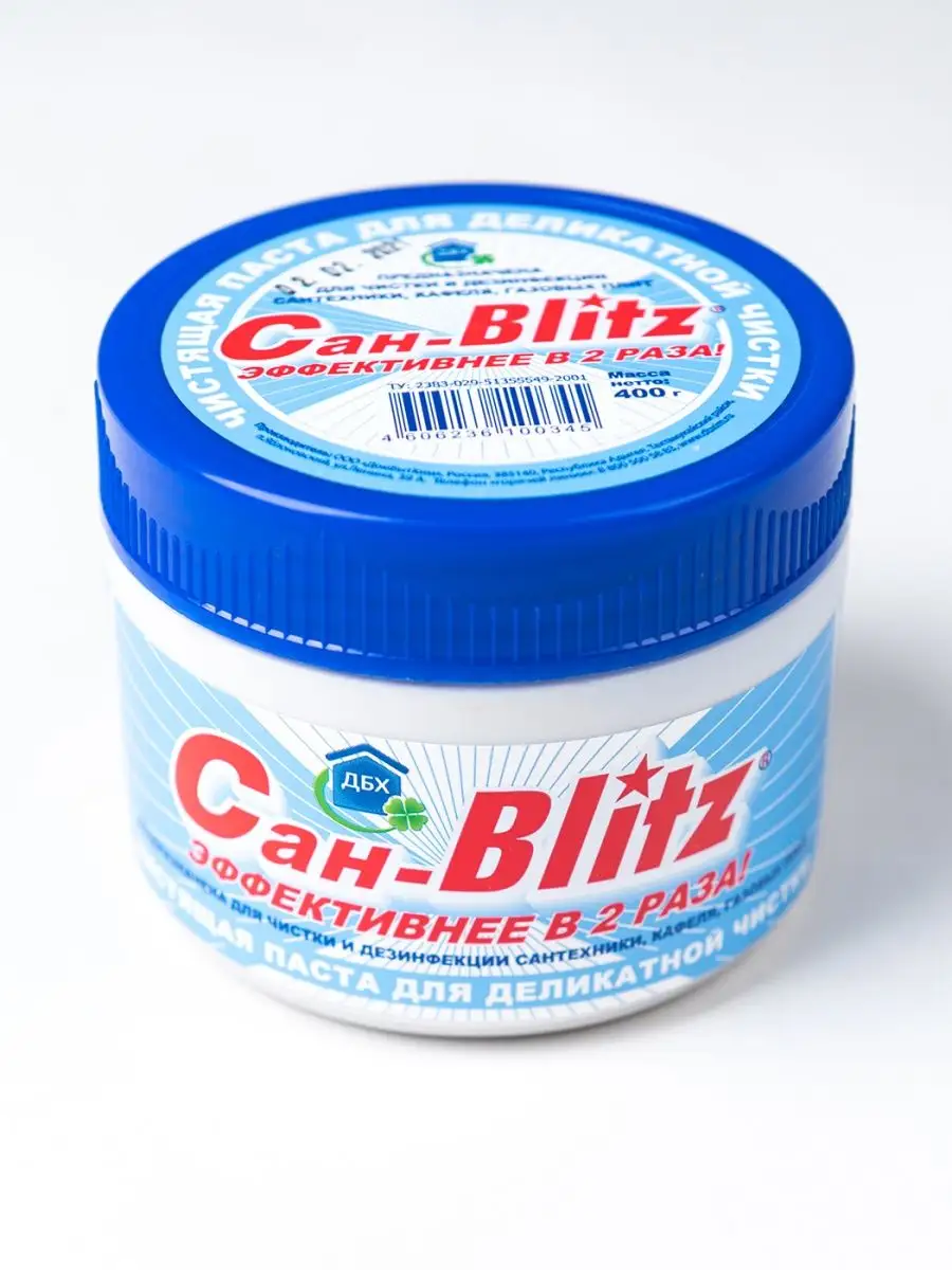 Описание: Чистящая паста Сан-Blitz создана для эффективного удаления стойких жировых загрязнений на кухне: мытья кухонной посуды (кастрюль и сковородок), столешницы, плиты и духовки. Также паста для уборки Сан-Блиц идеально справляется с известковым налетом в ванной комнате, чисткой и дезинфекцией раковин, ванн, унитазов, сантехник кафеля. Моющее средство Сан-Blitz - это поверхностно- активные вещества, мягкий абразивный материал и отдушки. Сочетание ПАВ в составе мою пасты позволят максимально расщепить и удалить жировые загрязнения, карбоксиметицелпюлоза предохранит поверхность от повторного оседания загрязнённых частиц, а мягкий абразивный наполнитель позволит очистить поверхность без механических повреждений. Паста очень экономична и удобна в использовании.
