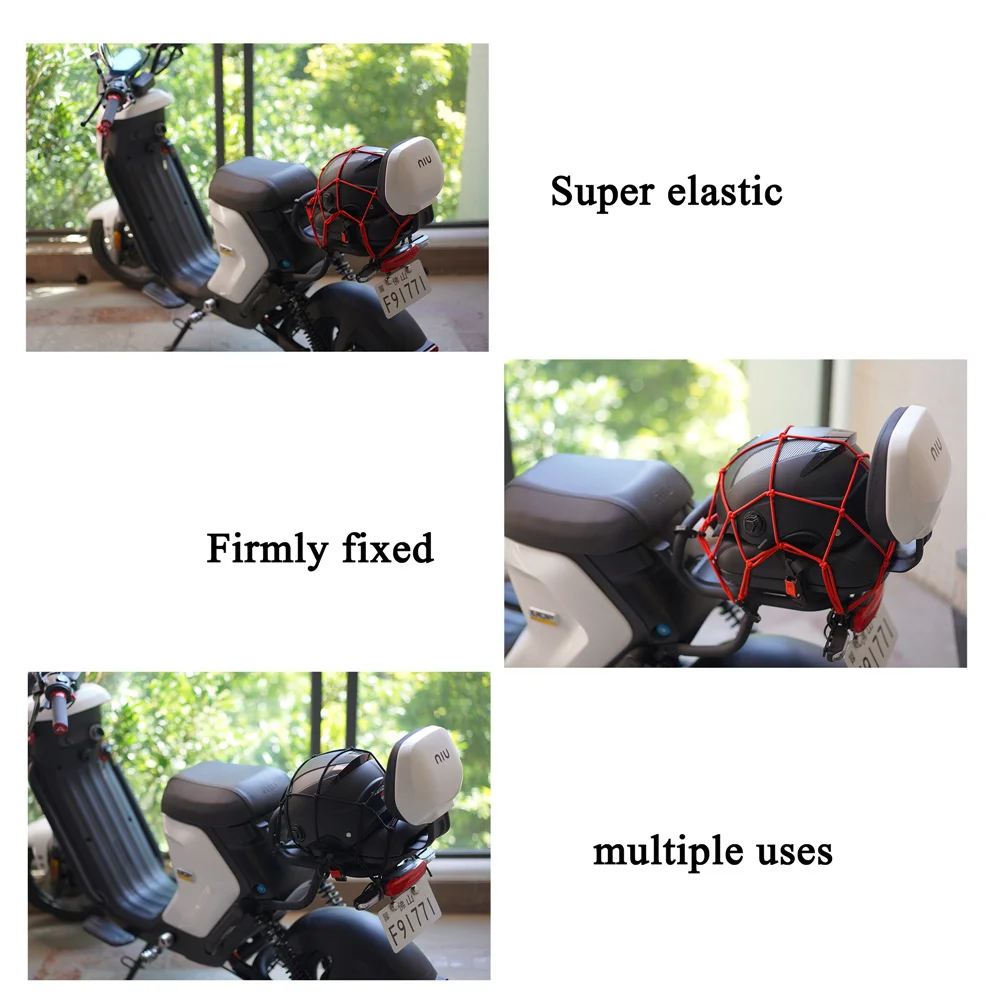 Универсальная эластичная Сетчатая Сумка Для мотоциклетного шлема, 6 пластиковых крючков, сетчатый держатель для багажа на мотоцикл, сетчатый органайзер для хранения, сумка