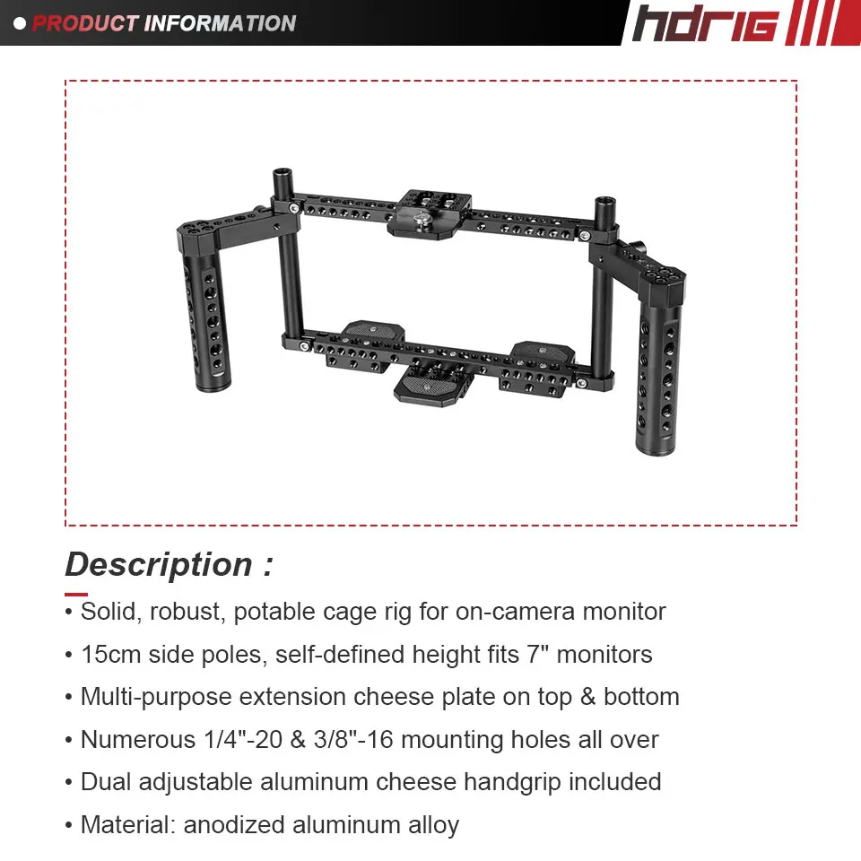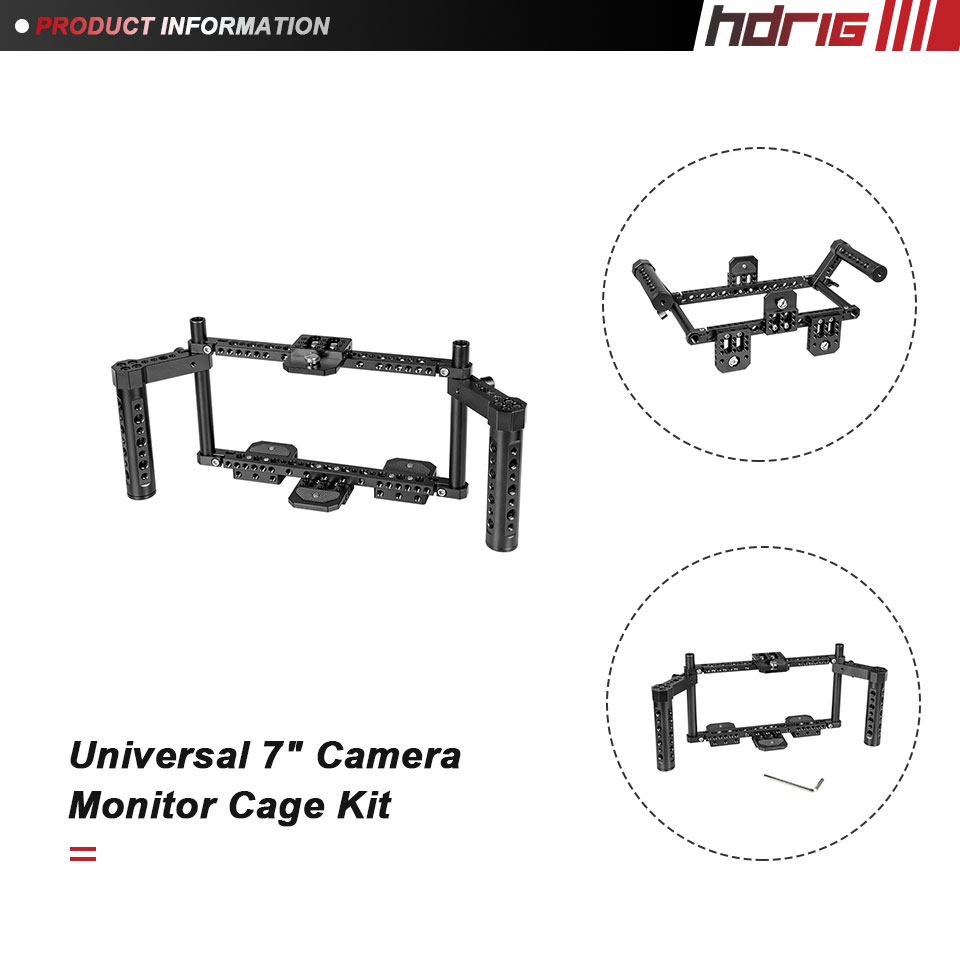 • Клетка для монитора HDRIG тщательно разработана для установки в универсальные мониторы на камере, она структурно прочная и надежная в использовании благодаря своей конструкции из высококачественного алюминиевого сплава.