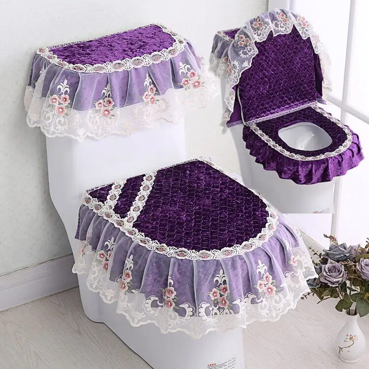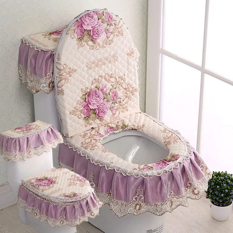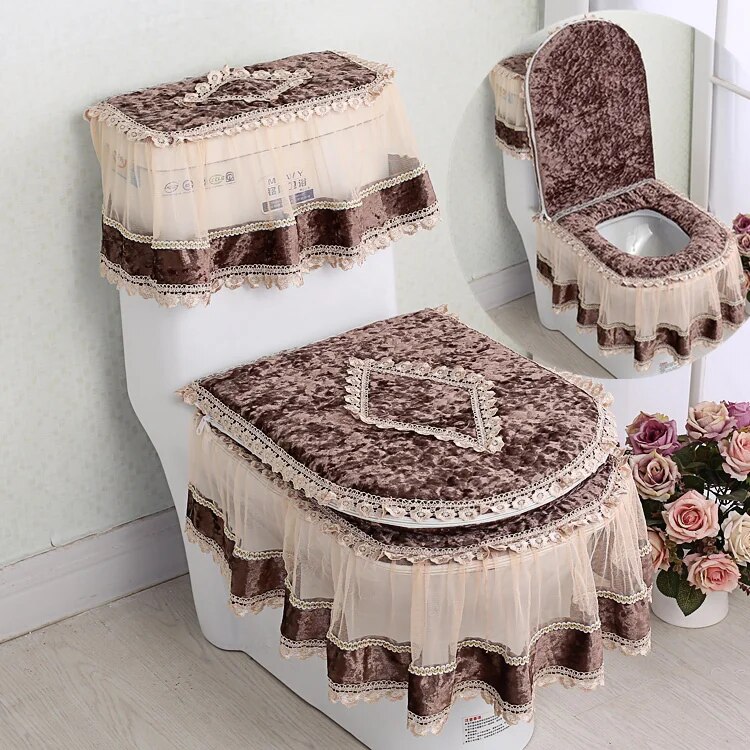 Универсальный унитаз на все сезоны, комплект из 3 предметов, коврик для унитаза, кружевная крышка для унитаза, крышка для резервуара для воды, Высококачественная Европейская ванная, u-образная молния