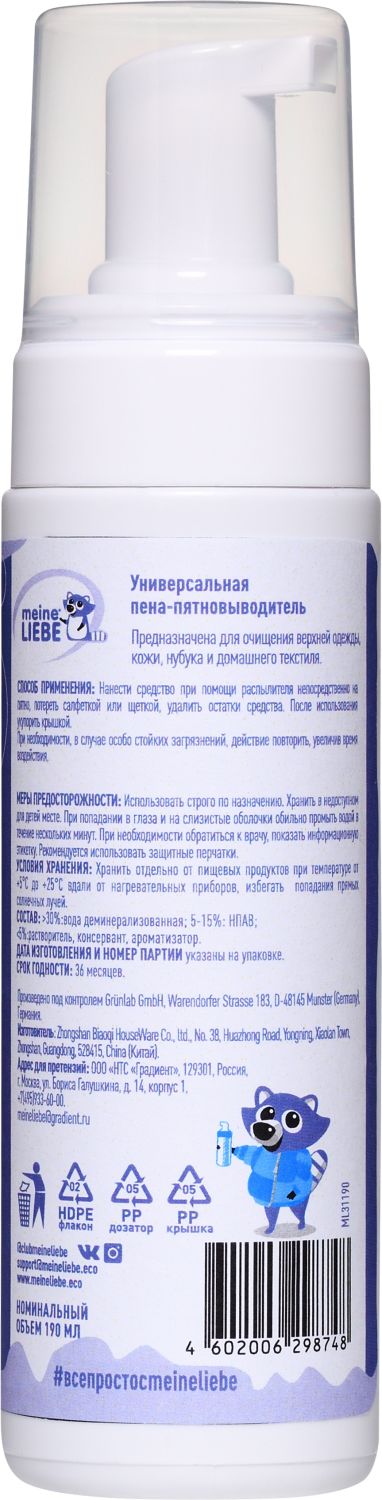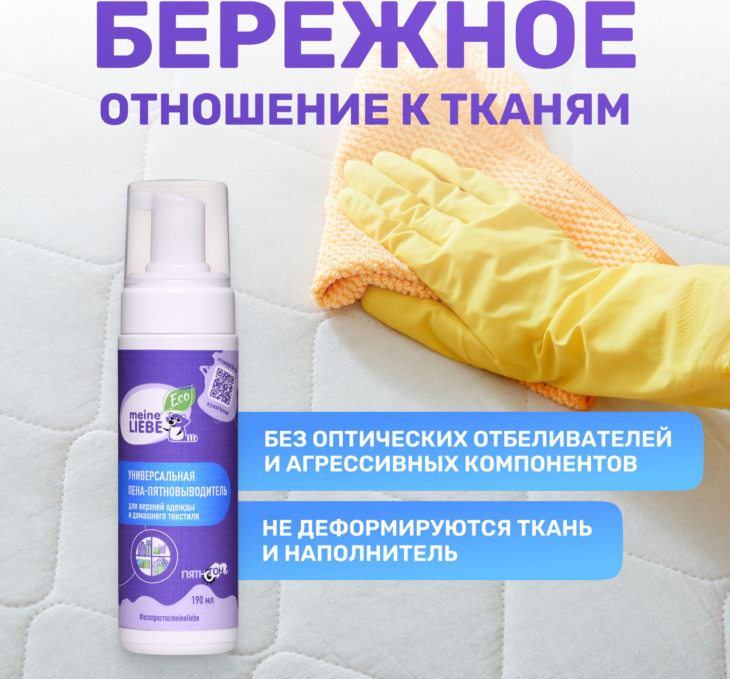 Универсальная пена-пятновыводитель MEINE LIEBE, для верхней одежды и домашнего текстиля, без хлора, 190 мл