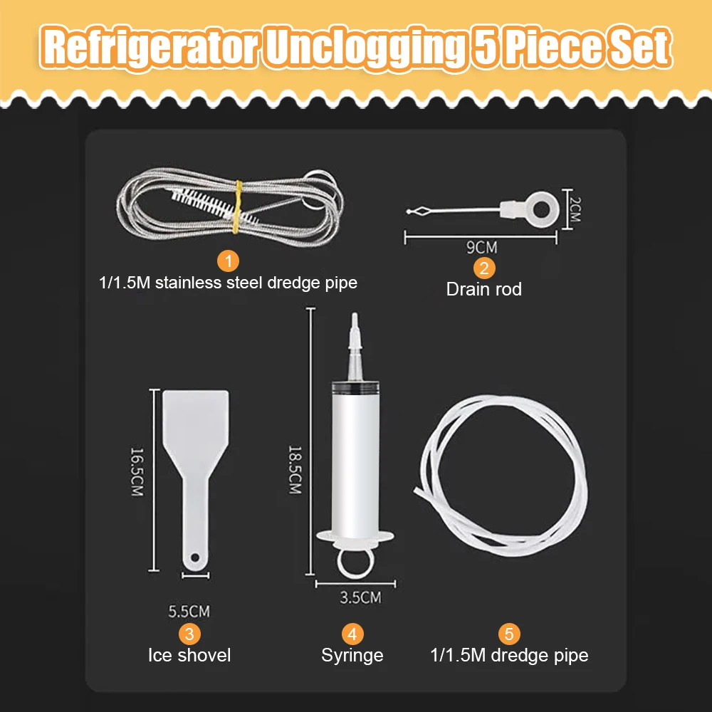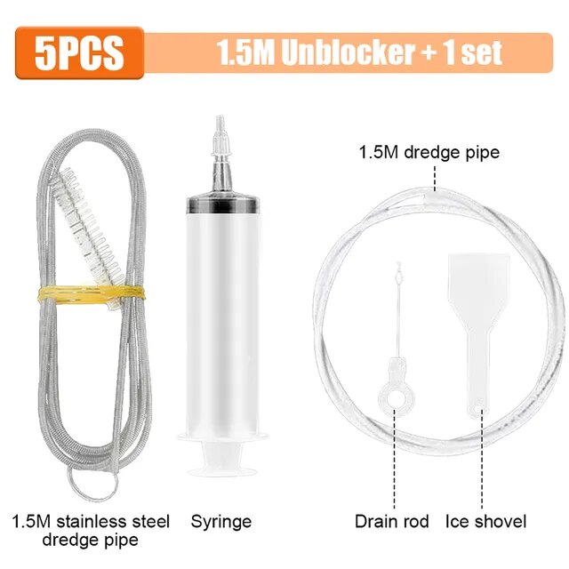 Универсальная щетка для очистки дренажа холодильника, щетка для мытья, шприц для всасывания, шланг, приспособление для очистки холодильника, трость 1/1, 5 м, Набор отверстий для слива
