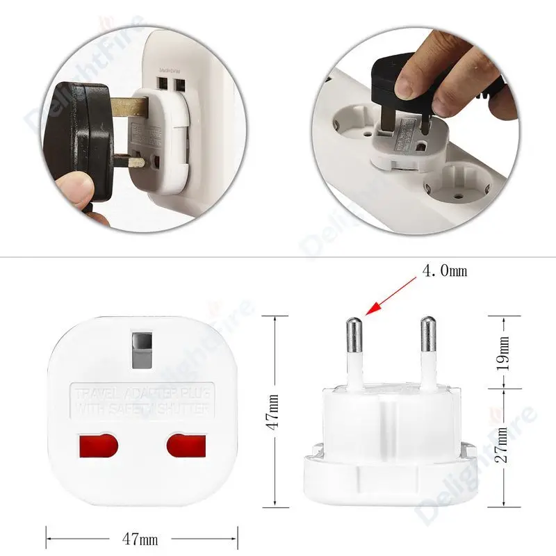 Универсальная штепсельная вилка европейского стандарта для великобритании и Европы, адаптер для путешествий 250 В, зарядное устройство, штепсельная вилка европейского стандарта