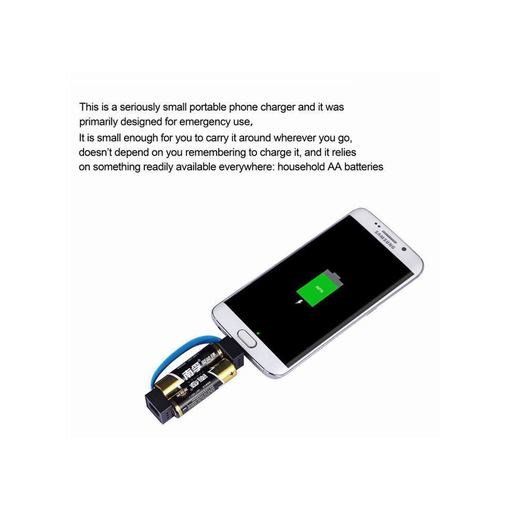 Универсальное аварийное зарядное устройство для телефона с питанием от 2 батареек AA с микро-USB