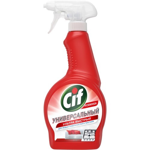 Описание: Спрей универсальный Cif ультрабыстрый, 500 мл действует мгновенно, глубоко проникая в самое сердце загрязнений. Чистящее средство содержит натуральное мыло и эффективно растворяет жир, масло, удаляет засохшие и пригоревшие остатки пищи. Просто нанесите небольшое количество спрея на загрязнения и спустя некоторое время смойте водой. Раз-два-три — и готово! Вы увидите чистую, блестящую поверхность без разводов и белых следов. Представьте, даже пятна на ковре и мягкой мебели не устоят перед мощной формулой средства Cif Красный! Можно больше не беспокоиться о дорогостоящей химчистке тканей. Бытовая химия экономно расходуется. Объема бутылки 500 мл хватит на несколько месяцев. Универсальное средство с нашей новой инновационной мягкой формулой подходит для кухни, ванной комнаты и остальной части дома и за его пределами – поистине универсальное средство в линейке Cif. Вы можете с меньшим трудом* удалить пятна от варенья, кетчупа, вина, кофе, растительного и оливкового масла, даже если запачкана тканевая обивка. Мы знаем, насколько утомительна уборка. Cleaners-продукты Cif подарят вам больше времени для жизни и любимых занятий. Чистящий спрей Cif Красный можно использовать для удаления пятен с обивки кресел в салоне автомобиля: нанесите спрей на ткань, оставьте на несколько секунд, протрите пятно в салоне автомобиля сухой тряпочкой! Средство Cif Красный устраняет даже пятна от моторного масла и бензина, оставляя легкий освежающий аромат цитрусовых плодов. Для того, чтобы справиться со сложными загрязнениями, оставьте средство Cif Универсальный бороться с грязью на несколько минут, после чего протрите тряпкой. Повторите процедуру для безупречной чистоты. Ваш дом и ваши любимые вещи — это ваше отражение! Наша цель — помочь вам без усилий создать чистую, красивую и уютную атмосферу вокруг вас! Как бы ни стояла задача по уборке, в линейке средств Cif вы найдете идеально подходящее решение! Cif Ультрабыстрый Универсальный – наше идеальное универсальное чистящее средство, когда уборка нужна везде, а средство хочется только одно! *В линейке продукции Unilever
