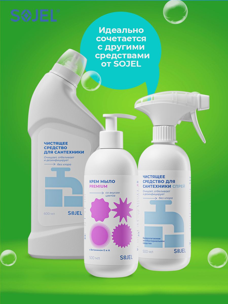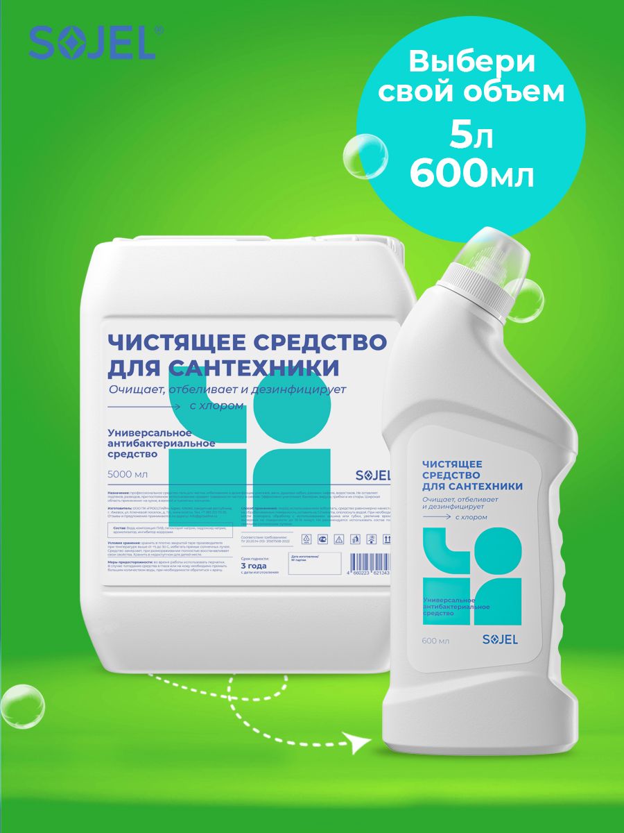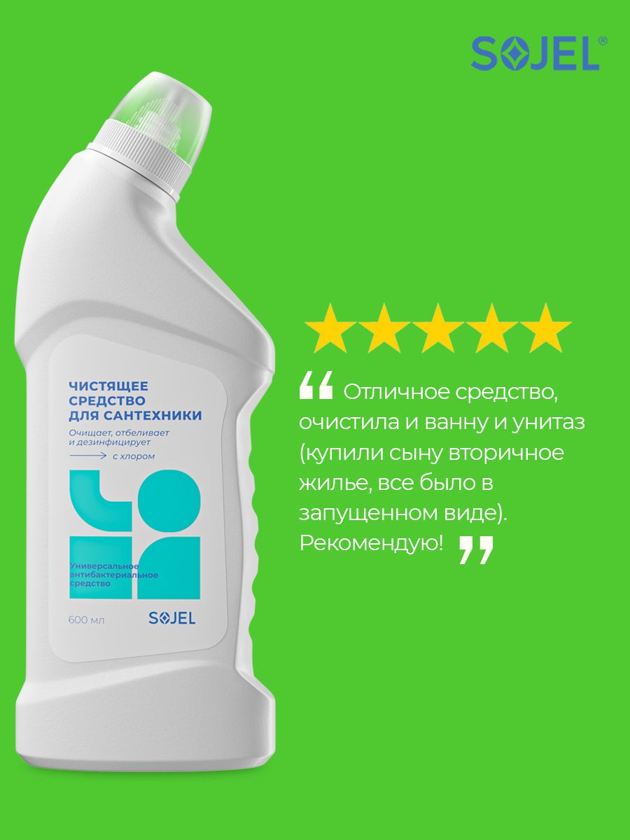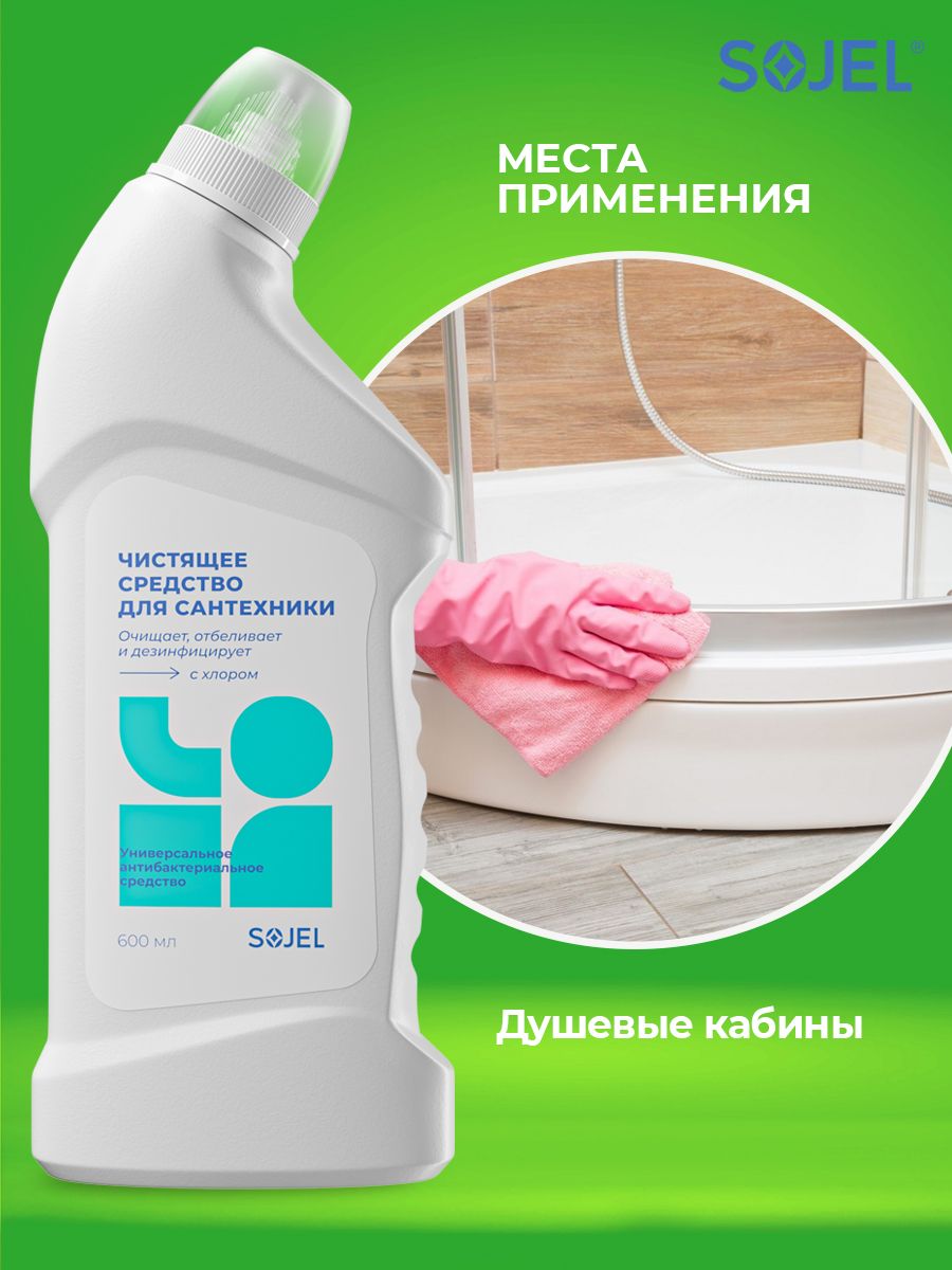 Описание: Чистящее средство для ванной и туалета Sojel поможет легко и быстро привести в порядок сантехнику и уничтожить микробы. Универсальный очиститель подходит для ежедневной уборки всех видов поверхностей в ванных комнатах и санузлах. Профессиональная бытовая химия для чистки, отбеливания и дезинфекции унитазов, ванн, раковин, пола из плитки кафеля, душевых кабин, раковин, кафеля, водостоков, бассейна. Гель для сантехники удаляет ржавчину и известковый налет, устраняет неприятные запахи, не оставляет подтеков, разводов, при постоянном использовании придает поверхности чистоту и сияние. Очиститель для унитаза без труда справится с известковым налетом, солевыми отложениями и жиром. Широкая область применения на кухне, в ванной и туалетных комнатах. Попробуйте чистящее средство для уборки дома и наслаждайтесь чистотой!