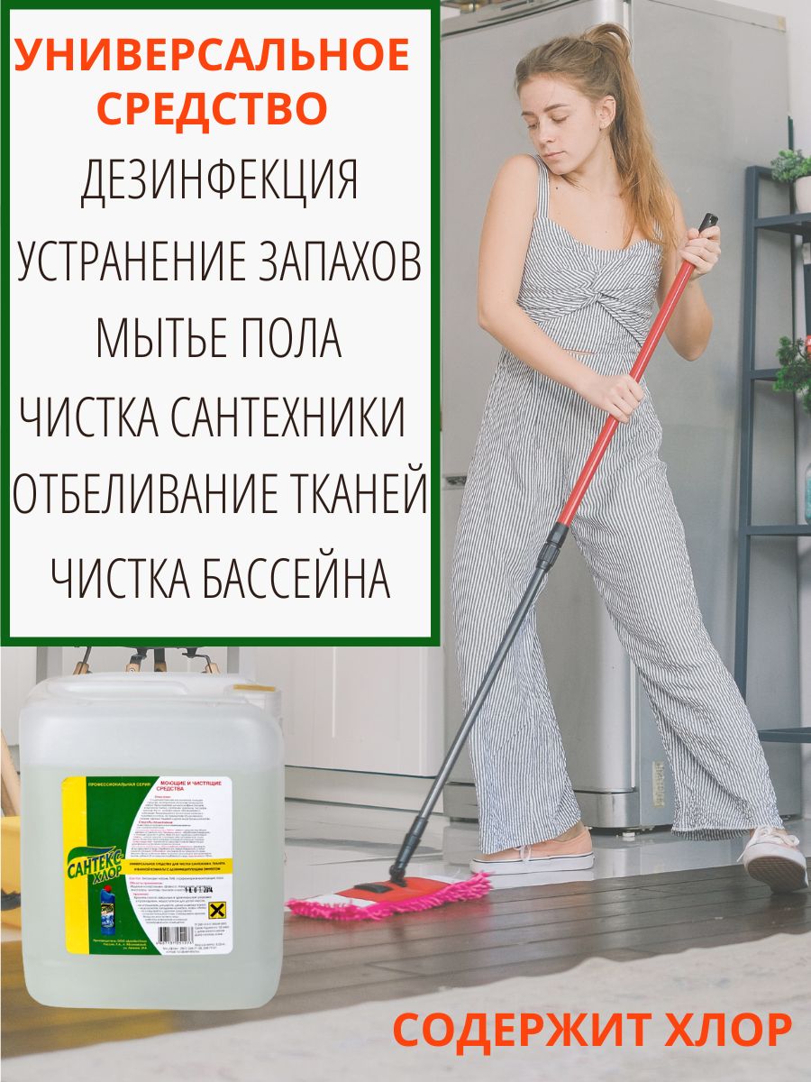 Универсальное чистящее средство для уборки всего дома Сантекс хлор, защита от бактерий и вирусов, 5 л