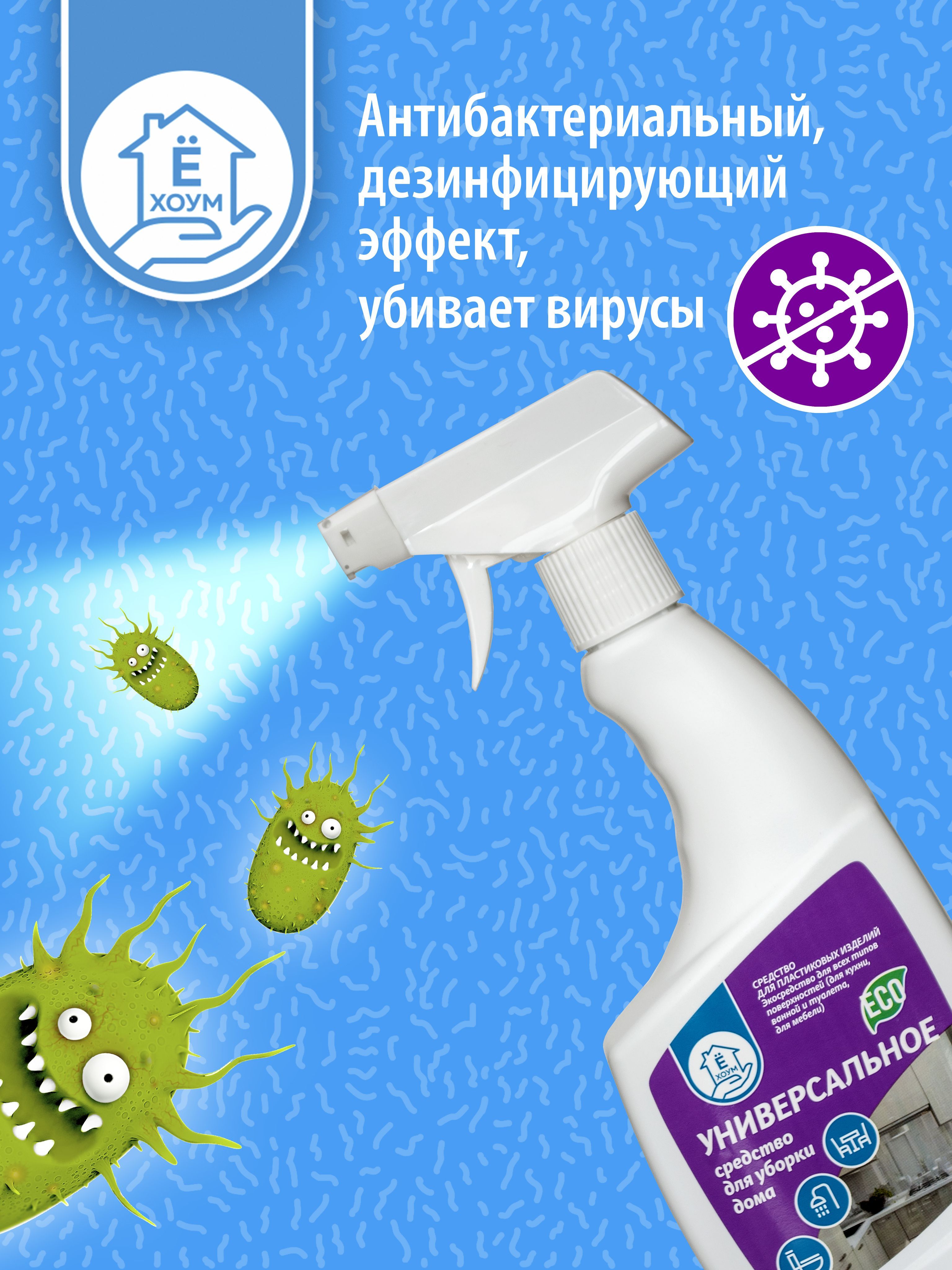 Описание: «Ё-ХОУМ УНИВЕРСАЛЬНОЕ» ЧИСТЯЩЕЕ СРЕДСТВО ДЛЯ УБОРКИ ВСЕГО ДОМА (кухня, ванна, душевая кабина, пол и т.д.) «10 В 1» Торговая марка «Ё-ХОУМ» — это многофункциональное, биоразлагаемое, пенное чистящее средство, которое быстро и легко удаляет любые виды загрязнений: грязь, пыль, известковый налет и жировые загрязнения. Эффективно устраняет неприятные запахи и обезжиривает поверхность, защищая ее от повторного загрязнения. Это средство подходит для любых видов поверхностей: напольных (ламинат, линолеум, паркет, керамическая плитка, плитка потолочная), глянцевых и лакированных, эмалированных и деревянных, пластика, керамики, хрома, нержавеющей стали, текстиля (ковры, обивка мягкой мебели и других), кафельной плитки, акриловых ванн, стеклокерамических плит, кухонных шкафов, посуды. Очистит комнату от пыли. Деликатная чистка ковров и ковролина, диванов, кухонного гарнитура и ухода за прочей мягкой мебелью. Чистящее средство для кухни, для туалета, для душевой кабины, для раковин, ванны, унитаза, джакузи и другой сантехники, для мытья полов. Легко смывается, не оставляя разводов, и придает блеск. Моющее средство является гипоаллергенным и не содержит красителей, хлора и агрессивных ПАВ, а также полностью состоит из биоразлагаемых компонентов. Бутылка оснащена триггером с равномерным распылителем жидкости. После применения необходимо промыть большим количеством воды. «Ё-ХОУМ УНИВЕРСАЛЬНОЕ» - ЭТО ВСЕГДА ЧИСТЫЙ ДОМ! . Наши чистящие средства и бытовая химия работают на 100%